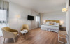 The hotel AluaSoul Orotava Valley Only Adults +16 is located approximately 250 m from a public sandy/rocky beach. The nearest bars and restaurants are located directly next to the building. The old town is around 800 m away. The nearest shops you can reach within around 5 km, a supermarket is just a few metres away from the hotel. There is a 24h shuttle service between the hotel and the airport (for a fee) 24h a day. On the beach are beach towels for a fee available. Near the beach there is a promenade where you can go for a stroll. The air-conditioned, GPS-verified hotel has a 24h reception, a lobby bar, Wi-Fi, internet access, 4 lifts, a first aid kit, parking spaces (for a fee) as well as a TV lounge with satellite TV. In the outdoor area of the property you will find a supervised pool (open all year), where you can rent pool towels for a fee and sun loungers and sun umbrellas are available for free. There is also a children's pool with a non-swimming area. Furthermore, outside you can find a terrace. You can store your luggage in the hotel's storage room. There is also a laundry service available at an additional cost to customers. Ironing equipment can be rented at the hotel for a fee. If necessary, you can contact the medical centre at any time (for a fee). The energy supply is 220 Volts. If you want to explore the holiday region, you can use the car and motorbike rental service close to the hotel (extra fee). At the reception, tickets are offered for excursions in the area. Dogs up to 10 kg are the only pets allowed in the hotel (for a fee). For guests on their honeymoon, the hotel has special offers such as special honeymoon packages. In your hotel, a lot of focus is placed on sustainability. This includes the provision of soap and shampoo dispensers, organic food and a central room air-conditioning. American Express, Euro/Master Card and Visa are accepted as means of payment. Due to its barrier-free facilities , such as barrier-free entrances, wheelchair accessible rooms, a wheelchair accessible lift and wheelchair-accessible bathrooms, the hotel is also suitable for wheelchair users. Catering As catering services the hotel offers all-inclusive, all-inclusive light, half board and breakfast only. Breakfast is offered from the buffet. Enjoy your lunch from the buffet or à la carte with starters, salads and desserts. Dinner is also served as a buffet or à la carte with starters, salads and desserts. Half board includes breakfast and dinner. When booking all-inclusive, one welcome drink is included. As part of the all-inclusive service, international alcoholic beverages (limited) are available around the clock and at no extra charge. For the meals, there are a buffet restaurant with terrace (Mediterranean, calorie-reduced, gluten-free and vegetarian dishes) and 2 bars as well as the pool bar. The drinks menu of the hotel includes water, soft drinks, coffee and tea, beer and wine. Appropriate clothing is required for lunch and dinner. Distances- Discotheque: approximately at 500 m