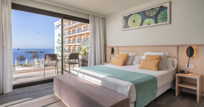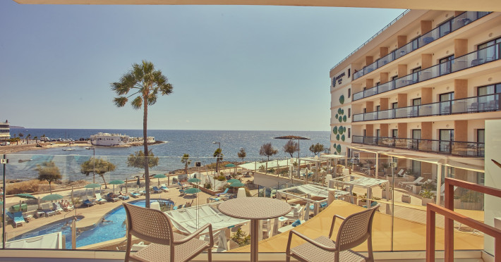 In the vicinity of the stone beach is located the apart hotel Aluasoul Palma. A supermarket and other shops you reach after around 500 m. The beach is patrolled by a lifeguard and awarded a blue flag. Near the beach there is a promenade where you can go for a stroll. The air-conditioned hotel is equipped with a 24h reception, a lobby bar, Wi-Fi, 2 lifts, a jacuzzi, showers and changing rooms, a first aid kit as well as a TV lounge with satellite TV. In the outdoor area you will find a garden as well as a heated pool that is open seasonally (open all year), where sun loungers, sun umbrellas and pool towels are available for free. Furthermore, outside you can find a sun terrace. You can store your valuables in the safe (extra fee), and your luggage in the hotel`s storage roomn. There is also a laundry service available at an additional cost to customers. For your comfort there is a concierge service. If necessary, you can contact the medical centre at any time (for a fee). Guests at the accommodation can get a wake-up call from the hotel personnel. For conventions and other business meetings, the hotel offers a conference area (extra fee) with a total of 40 seats, printer as well as overhead projector. If you want to explore the holiday region, you can use the car rental service close to the hotel (extra fee). At the hotel reception, tickets are offered for excursions in the area. In your hotel, a lot of focus is placed on sustainability. This includes the hotel`s own recycling bins and organic food. The hotel requires that all guests pay a deposit upon arrival. Due to its barrier-free facilities , such as barrier-free entrances, wheelchair accessible rooms and wheelchair-accessible bathrooms, the hotel is also suitable for wheelchair users (dimensions: entrance door width: 080 m, lift door width: 080 m, lift depth: 118 m). Catering As catering services the hotel offers half board and breakfast only. Breakfast is offered continental or from the buffet. Enjoy your lunch à la carte. Dinner is also served as a buffet. For the meals, there are a buffet restaurant with terrace (Mediterranean, calorie-reduced, gluten-free and vegetarian dishes) and a bar, the cafeteria as well as the pool bar. For dinner, guests are asked to wear appropriate clothing in the restaurant. Distances- Airport: approx. 2,3 km