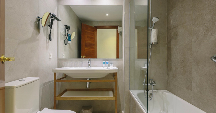 The hotel ILUNION PALMANOVA MALLORCA is located approximately 100 m from a beach. There is a shuttle service between the hotel and the airport. The hotel is equipped with a 24h reception, a lobby bar, Wi-Fi, 3 lifts as well as a TV lounge. In the outdoor area you will find a pool that is open seasonally, where sun loungers and sun umbrellas are available for free. For children there is also a children's pool. Furthermore, you can relax outdoors on the sun terrace. For conventions and other business meetings, the hotel offers a conference area. If you want to explore the holiday region, you can use the car rental service close to the hotel. Due to its barrier-free facilities , such as barrier-free entrances, the hotel is also suitable for wheelchair users. Catering As catering services the hotel offers all-inclusive. Breakfast is offered from the buffet. Lunch and dinner are also served from the buffet. For the meals, there are the cafeteria as well as the pool bar. Distances- Airport: approximately at 27 km