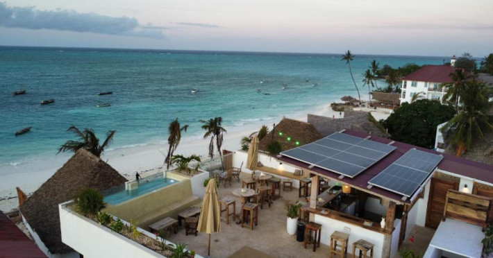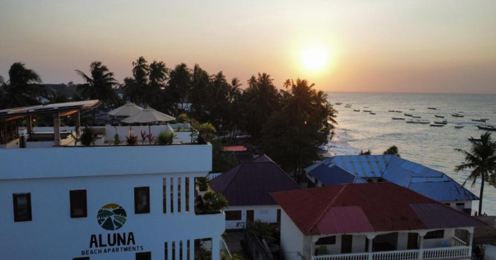 Locație pe malul mării: Aluna Beach Apartments din Nungwi oferă acces direct la plajă și vederi uimitoare la mare. Oaspeții se bucură de o terasă la soare și o piscină pe acoperiș, perfecte pentru relaxare.