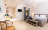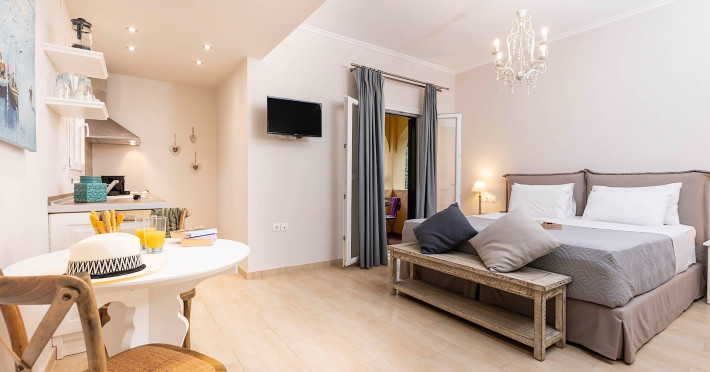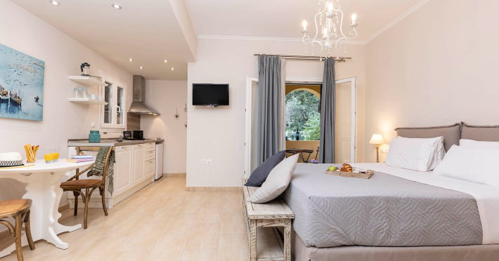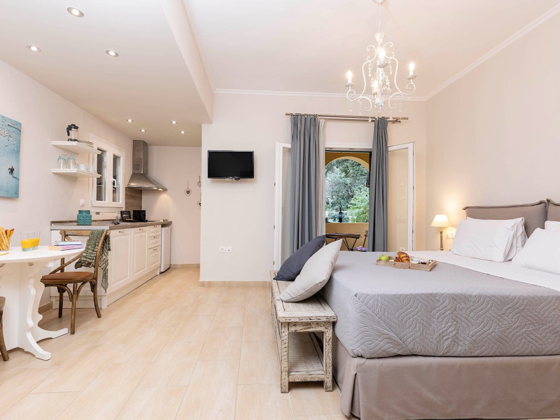 A Tranquil Retreat on a Green Peninsula Built on a small, lush peninsula in the Kontokali area, our hotel offers a serene escape surrounded by beautiful gardens and the refreshing sea breeze. Located just 5 km from Corfu Town, it provides the perfect balance between relaxation and easy access to the island’s vibrant capital. Each apartment is thoughtfully designed for comfort, featuring a cozy living area with a sofa set, a kitchenette, and complimentary WiFi. For those who love to cook, a fully equipped kitchen with glassware, kitchenware, and a refrigerator is available. Some units also offer a private sunbathing terrace, perfect for soaking up the Mediterranean sunshine. Guests can start their day with a delightful breakfast, served fresh every morning, before heading out to explore or unwind by the outdoor swimming pool. The hotel is also just 250 meters from the beach, offering multiple options for relaxation. Each apartment features a private bathroom with a walk-in shower for added convenience. For those looking to discover Corfu’s cultural treasures, the Municipal Art Gallery II is just a 15-minute drive away, while Gouvia Marina, a lively spot for yachting and seaside dining, is only a 25-minute walk from the property. Conveniently located, our hotel is well-connected by public transport, with Kontokali bus station just a short walk away. Ioannis Kapodistrias International Airport is only 10 km from the hotel, ensuring a smooth arrival and departure experience. We look forward to welcoming you for a memorable stay!Datorita dinamicitatii domeniului disponibilitatea ofertelor se modifica de la un moment la altul. De aceea ofertele sunt valabile in limita locurilor disponibile. Agentia nu este responsabila pentru eventualele neconcordante care pot aparea intre informatiile privind tarifele si alte detalii din site si informatiile primite in agentie. In aceste cazuri vor avea prioritate, intotdeauna, informatiile primite in agentie.