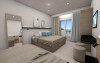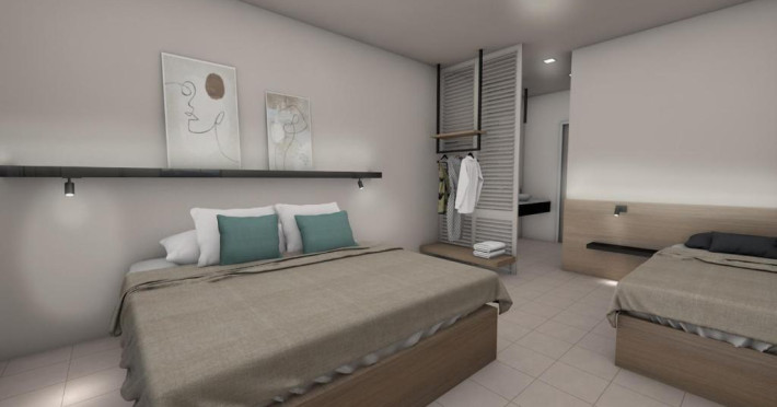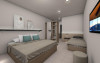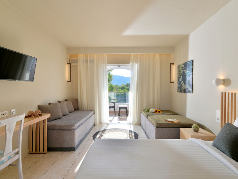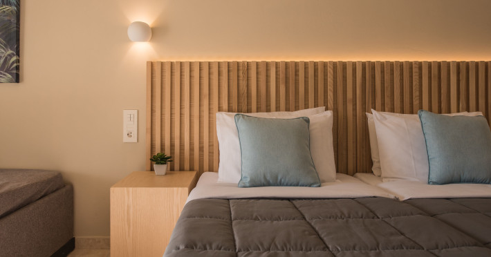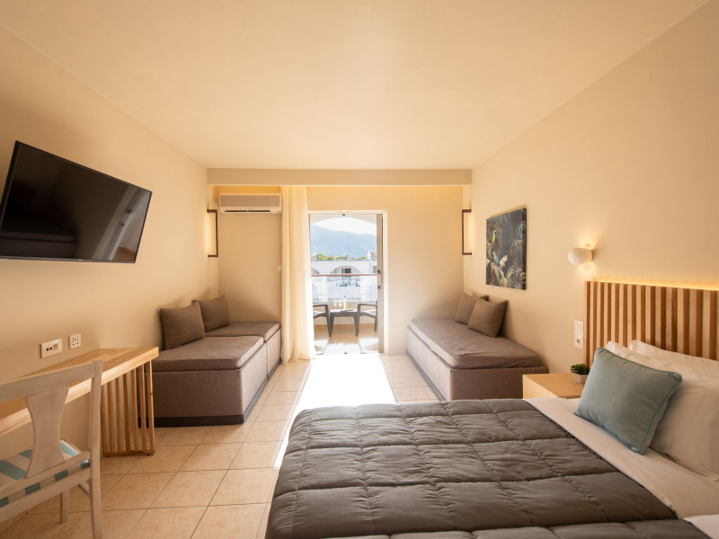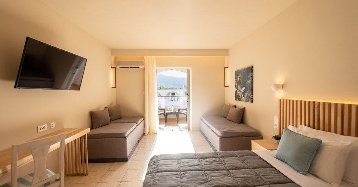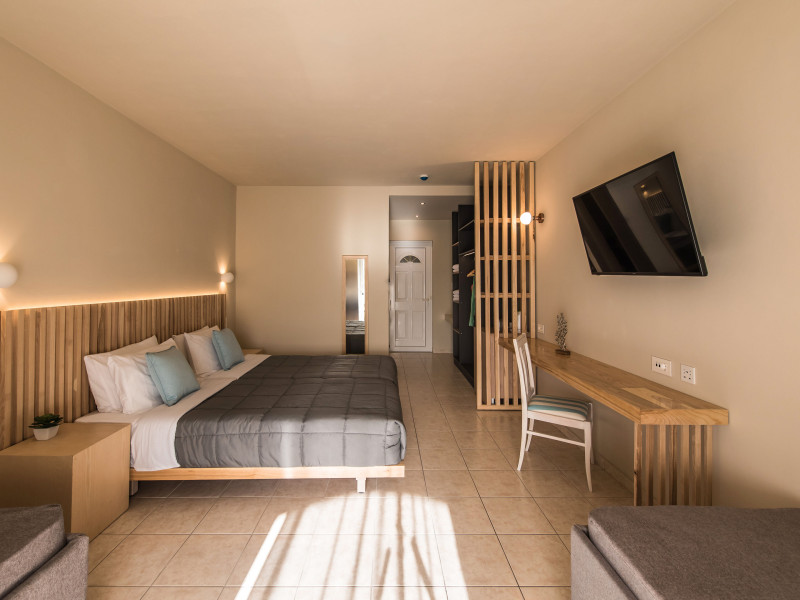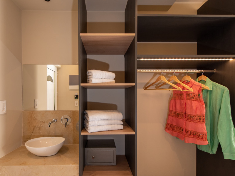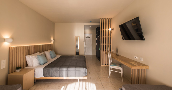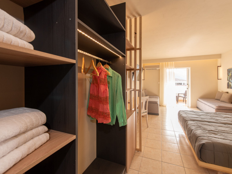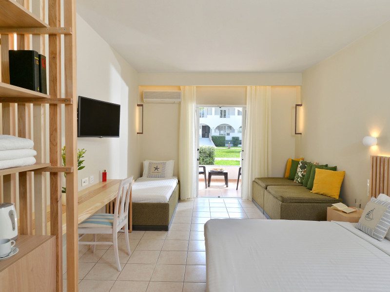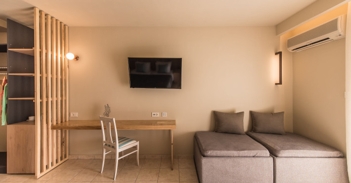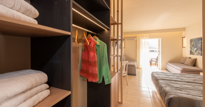 Aparatul de aer condiționat creează o atmosferă plăcută in camere. Majoritatea camerelor dispun de un balcon ce oferă mai mult spațiu de odihnă și relaxare pe timpul șederii. Există dormitoare separate. Mobilierul camerelor cuprinde o chicinetă, un frigider și canale prin satelit. Amenajarea interioară a băii băi include un duș.