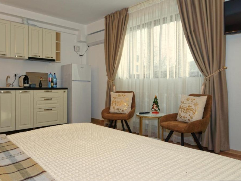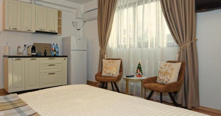 Fiecare camera include o bucatarie complet utilata, cu masa, un televizor cu ecran plat cu canale prin cablu si o baie proprie cu dus, articole de toaleta gratuite si un uscator de par. Oaspetii au la dispozitie de asemenea un frigider si plita, precum si o cafetiera si un ibric electric.Acest aparthotel se afla in apropierea restaurantului Mamma Mia (200m distanta sau cu livrare in camera tip catering), care serveste mancaruri din bucataria pizza, locala si internaionala. La cerere, sunt disponibile si preparate vegetariene, fara lactate si vegane.Printre punctele de atractie populare situate in apropiere de AMADA CITY CENTER se numara Metropolitan Cathedral Iasi, Iasi Romanian National Opera si Vasile Alecsandri National Theater. Cel mai apropiat aeroport este Aeroportul Internaional Iasi, situat la 7 km de AMADA CITY CENTER.Datorita dinamicitatii domeniului disponibilitatea ofertelor se modifica de la un moment la altul. De aceea ofertele sunt valabile in limita locurilor disponibile. Agentia nu este responsabila pentru eventualele neconcordante care pot aparea intre informatiile privind tarifele si alte detalii din site si informatiile primite in agentie. In aceste cazuri vor avea prioritate, intotdeauna, informatiile primite in agentie.