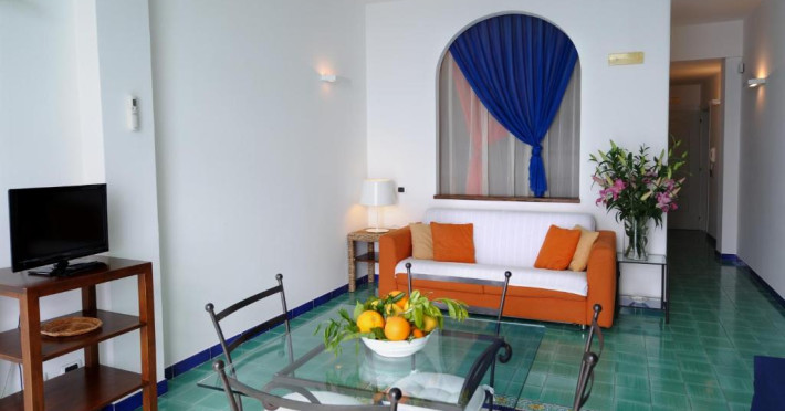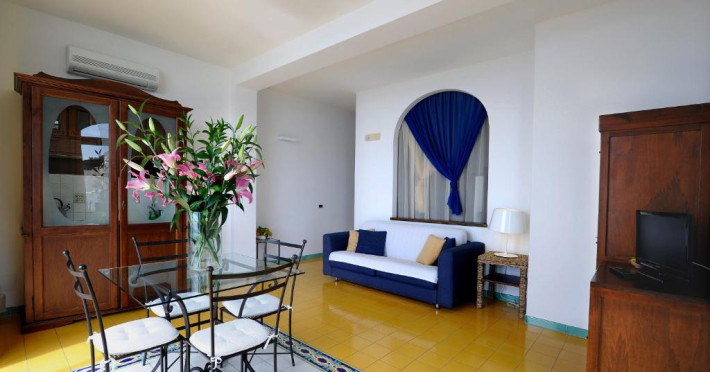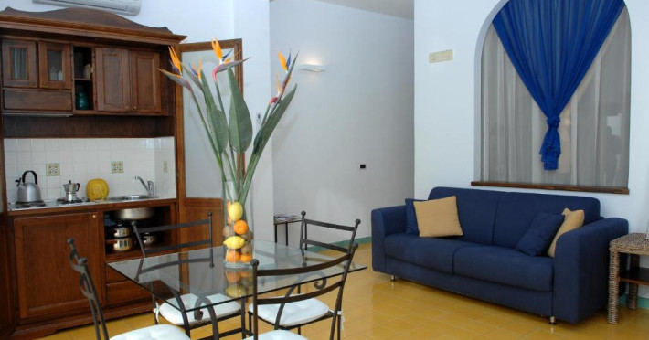 Camerele de la Amalfi Residence au TV prin satelit și baie privată. De asemenea, apartamentele au living spațios și chicinetă complet utilată. Prosoapele si lenjeria de pat sunt incluse in tarif. Vă puteti relaxa pe terasă si puteți admira vederea la mare, cu insula Capri in depărtare. Micul dejun poate fi savurat in apartamentul dumneavoastră, dar trebuie comandat cu 1 zi inainte.