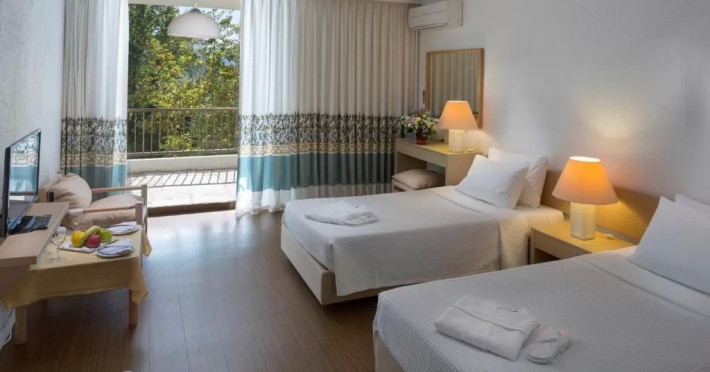 Sunt disponibile 146 camere. Oaspeții au la dispoziție serviciul de room service pentru a servi masa sau diverse băuturi. Camerele de la Amalia Hotel Olympia sunt dotate cu aer condiționat, Tv cu canale prin satelit și seif. Unele camere au balcon, cu vedere la grădină, unde oaspeții se pot relaxa în compania celor dragi. În camere există baie cu cadă prevăzută cu foehn. Curățenia in cameră se face zilnic. Fiecare unitate de cazare are frigider.