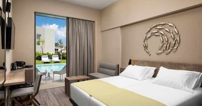 În plus, hotelul dispune de un bar, o piscină principală exterioară cu un design unic și o secțiune separată pentru copii, un loc de joacă, precum și un restaurant/tavernă ce deschide începând cu ora 10:00 și până seara târziu, completat de un bar la piscină.