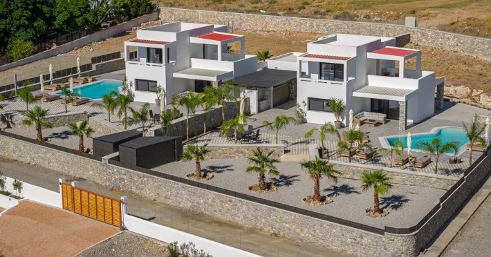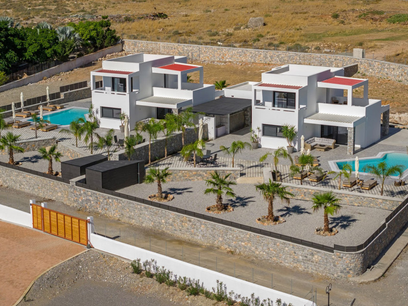 A brand-new sanctuary of design and serenity.. The Amani Retreat offers an extraordinary opportunity to experience two brand-new, side-by-side luxury villas, perfectly designed for larger groups seeking space, privacy, and modern sophistication. Together, the villas provide a total of 8 elegantly appointed bedrooms, 6 luxurious bathrooms, 2 private swimming pools, and 2 heated jacuzzis, ensuring ultimate comfort and flexibility for up to 16 guests.Each villa showcases contemporary architecture complemented by refined, stylish interiors, featuring open-plan living areas that create a seamless flow between indoor and outdoor spaces. The fully equipped kitchens are ideal for culinary enthusiasts, while spacious dining and lounge areas provide the perfect setting for relaxing, socializing, or entertaining in style.The outdoor areas are designed for both relaxation and enjoyment, with beautifully landscaped gardens, sun-drenched loungers, shaded seating areas, and cozy corners. Panoramic views of the Aegean Sea can be enjoyed from the upper-floor terraces, offering a breathtaking backdrop for unwinding, taking in the sunset, or savoring a quiet moment with loved ones.Located just minutes from the iconic village of Lindos and its pristine beaches, the Amani Retreat perfectly combines luxury, tranquility, and convenience. Whether for families, groups of friends, wellness retreats, or special celebrations, the retreat provides the ultimate setting for an unforgettable experience in Rhodes, where every detail is designed to offer indulgence, comfort, and lasting memories.A brand-new sanctuary of design and serenity.. The Amani Retreat offers an extraordinary opportunity to experience two brand-new, side-by-side luxury villas, perfectly designed for larger groups seeking space, privacy, and modern sophistication. Together, the villas provide a total of 8 elegantly appointed bedrooms, 6 luxurious bathrooms, 2 private swimming pools, and 2 heated jacuzzis, ensuring ultimate comfort and flexibility for up to 16 guests.Each villa showcases contemporary architecture complemented by refined, stylish interiors, featuring open-plan living areas that create a seamless flow between indoor and outdoor spaces. The fully equipped kitchens are ideal for culinary enthusiasts, while spacious dining and lounge areas provide the perfect setting for relaxing, socializing, or entertaining in style.The outdoor areas are designed for both relaxation and enjoyment, with beautifully landscaped gardens, sun-drenched loungers, shaded seating areas, and cozy corners. Panoramic views of the Aegean Sea can be enjoyed from the upper-floor terraces, offering a breathtaking backdrop for unwinding, taking in the sunset, or savoring a quiet moment with loved ones.Located just minutes from the iconic village of Lindos and its pristine beaches, the Amani Retreat perfectly combines luxury, tranquility, and convenience. Whether for families, groups of friends, wellness retreats, or special celebrations, the retreat provides the ultimate setting for an unforgettable experience in Rhodes, where every detail is designed to offer indulgence, comfort, and lasting memories.