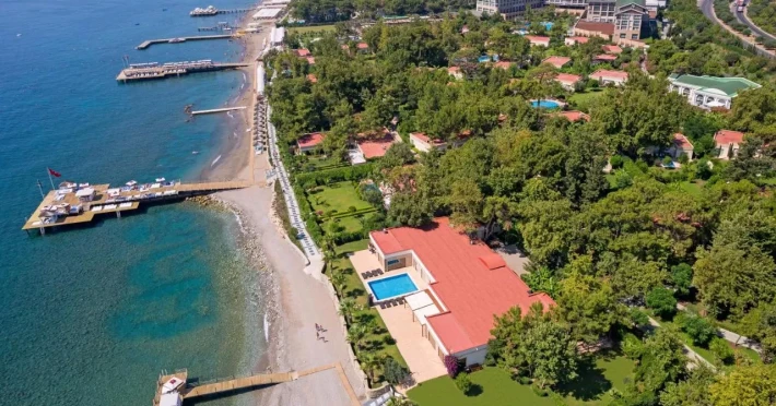 Amara Luxury Resort vă aduce albastrul Mediteranei cu conceptul său all inclusive ultra-luxos! Amara Luxury Resort, construit pe o suprafață de 140.000 m2, deschide ușile arhitecturii sale unice pentru vizitatorii săi din regiunea Antalya Kemer. Vă așteaptă diferite bucătării internationale, special pregătite pentru vizitatori, opțiuni de cazare în camere și vile, o plajă privată și piscine care se îmbină cu marea!Localizare