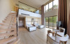- 1 prestige suite cu 2 nivele (la primul nivel: zona de living, dormitor; la nivelul doi: dormitor cu usa, 2 TV, 2 bai, max. 4 pers., 149 m2);