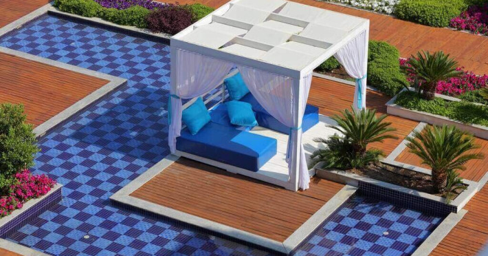 - 2 platinum duplex suite cu 2 nivele (vedere la mare, la primul nivel: dormitor; la nivelul doi: dormitor cu usa, terasa, 2 TV, 2 bai, piscina individuala, max. 4 pers., 79 m2);