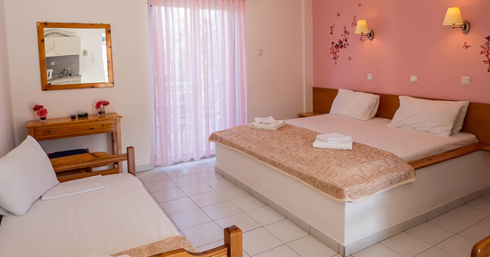 Toate camerele de la Amarilia Studio au deschidere intr-un balcon sau patio, cu vedere la munte sau la gradina. Fiecare are o chicineta, cu plite de gatit, fierbator de apa si masa. De asemenea, facilitatile includ aer conditionat (contra-cost, se achita la receptie in ziua cazarii, aprox. 7 euro/ camera/ zi) si TV cu canale prin satelit.