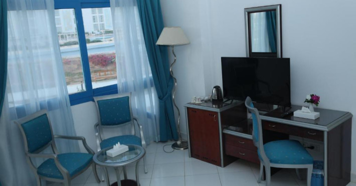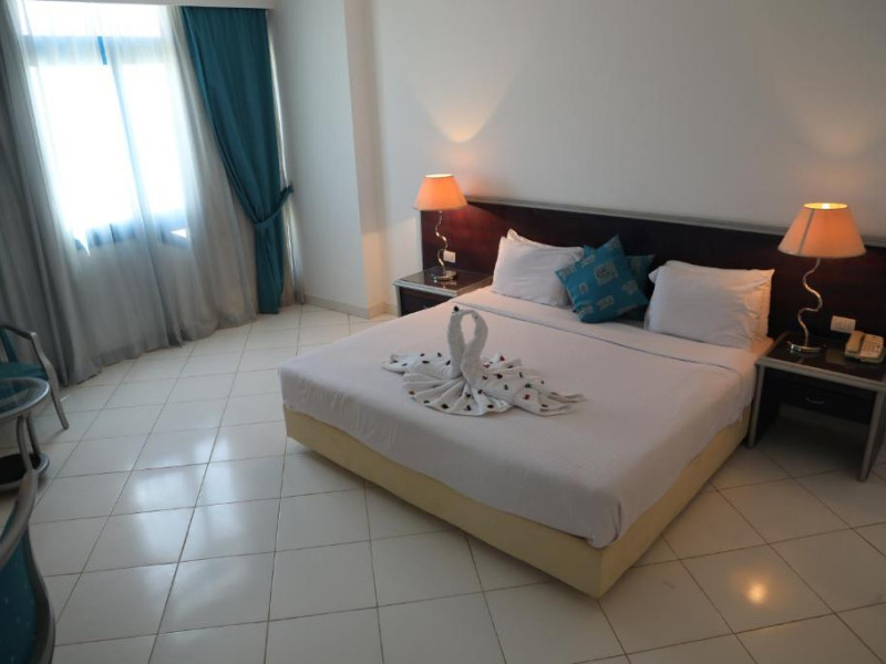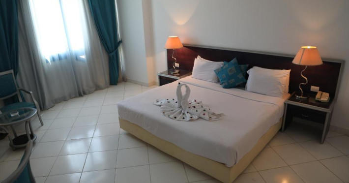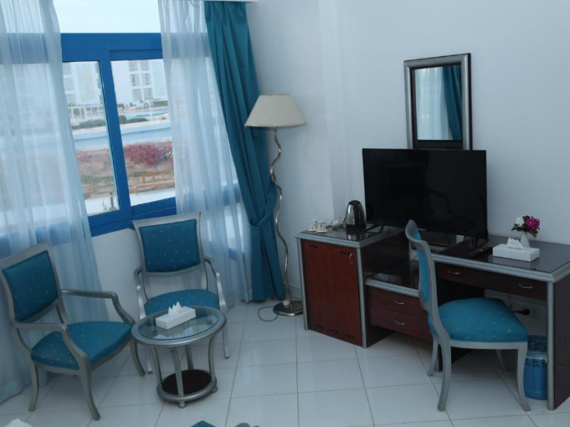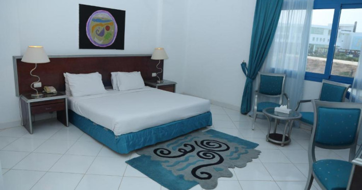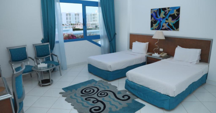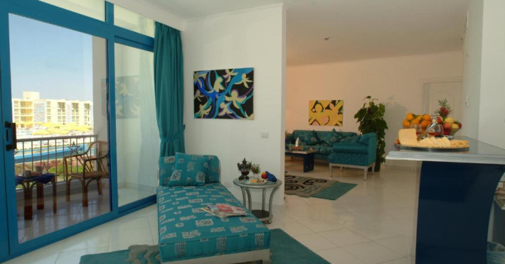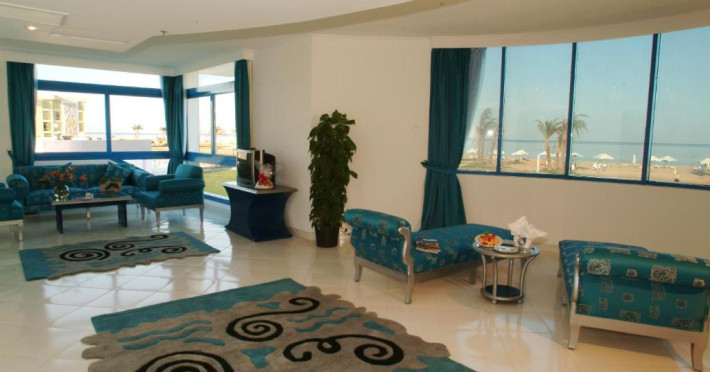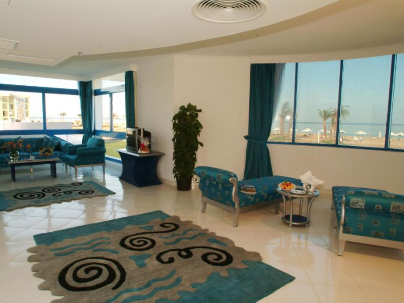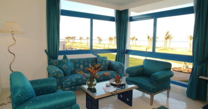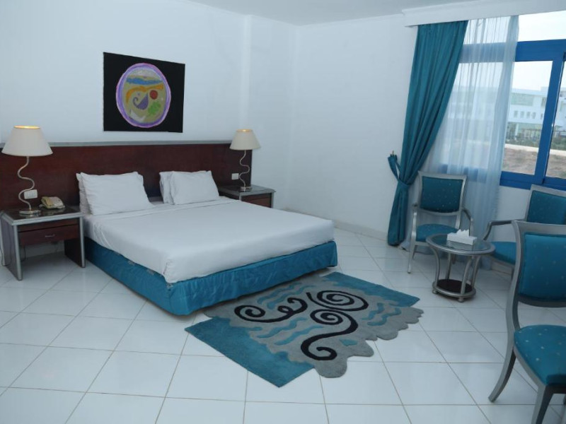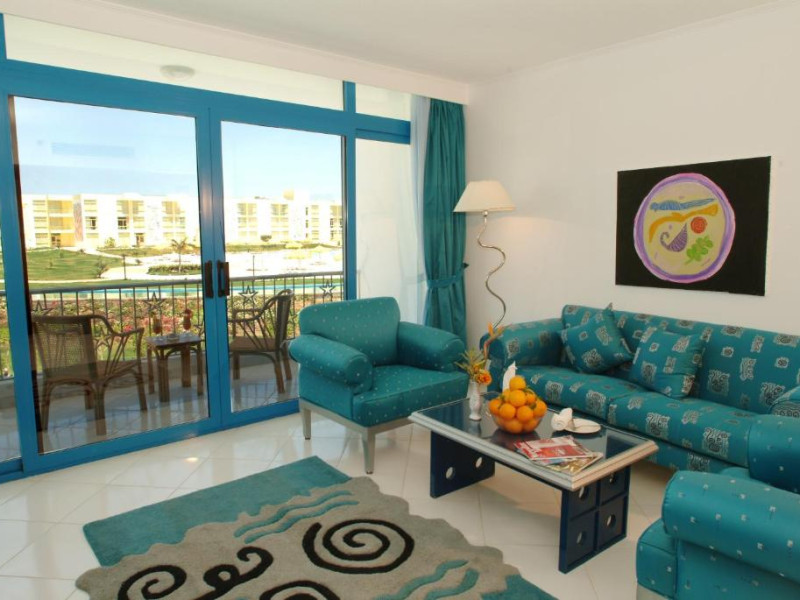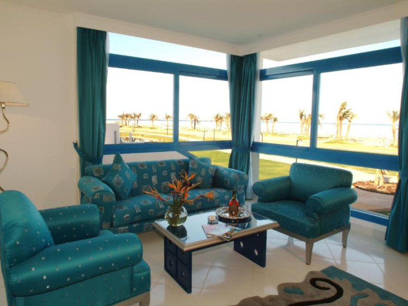 Camerele sunt decorate in nuanțe marine și sunt dotate cu balcon sau terasă, multe dintre ele oferind priveliști spectaculoase spre mare. Pentru momentele de relaxare, resortul pune la dispoziție un centru spa cu tratamente tradiționale egiptene și facilități moderne de wellness.