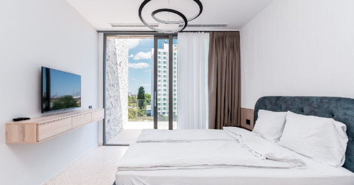 Studio Superior: este mai spatios si este format dintr-un spatiu deschis cu bucatarie utilata, pat matrimonial, fotoliu extensibil, baie cu dus, balcon. Are 1 loc de parcare asigurat. Suprafata: 49 mp.