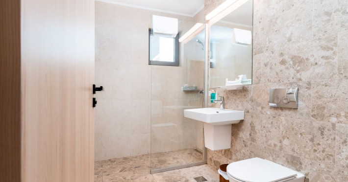 Apartament superior cu 2 camere: este mai spatios si are 2 bai. Este format din living cu canapea extensibila, bucatarie utilata, dormitor cu pat matrimonial, 2 bai cu dus, terasa. Are 1 loc de parcare asigurat. Suprafata: 63 mp.