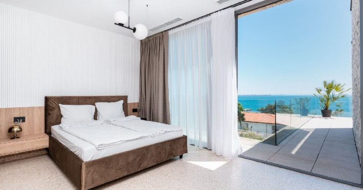 Apartament executive cu 2 camere: este mai spatios si are 2 bai si 2 terase mari. Este format din living cu canapea extensibila, bucatarie utilata, dormitor cu pat matrimonial, 2 bai cu dus, si 2 terase dotate cu sezlong. Are 1 loc de parcare asigurat. Suprafata: 60 mp.