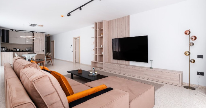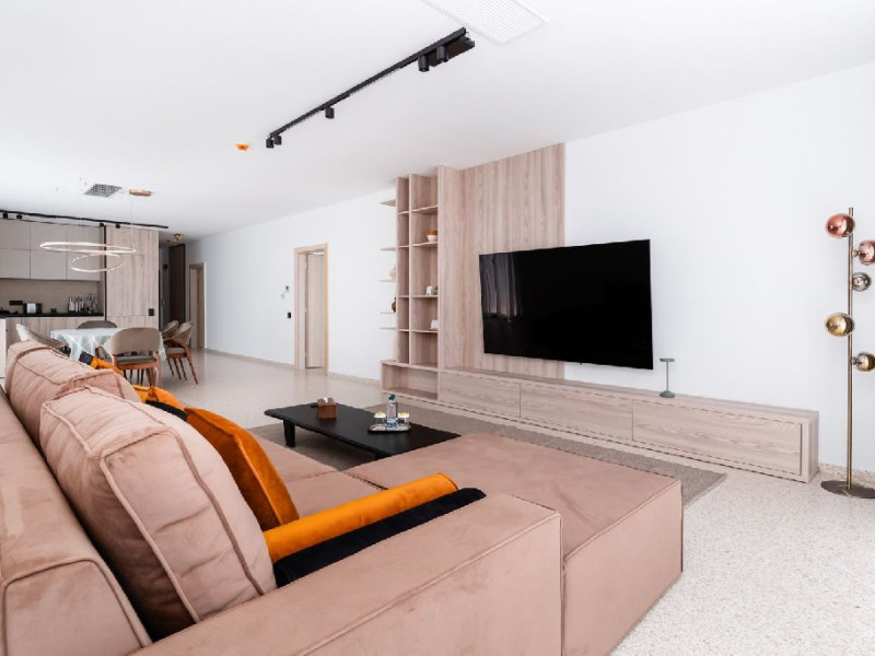 Penthouse 215 mp: este format din living cu canapea extensibila, bucatarie utilata, 2 dormitoare cu pat matrimonial, 3 bai cu dus. 1 loc de parcare asigurat.
