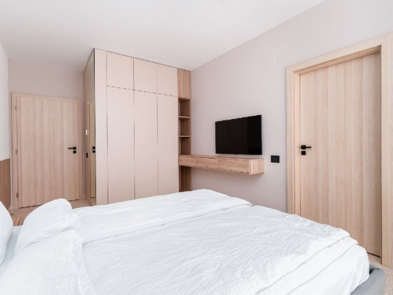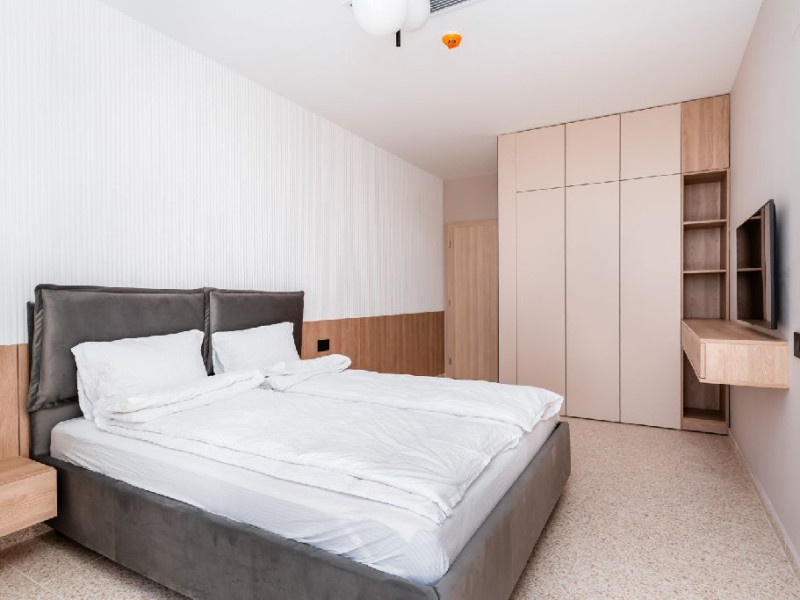 Penthouse 140 mp: este format din living cu canapea extensibila, bucatarie utilata, 2 dormitoare cu pat matrimonial, 3 bai cu dus. 1 loc de parcare asigurat.