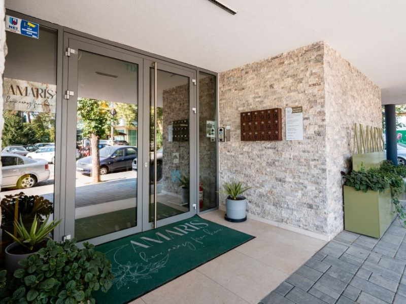 Aparthotel Amaris pune la dispozitia turistilor studiouri si apartamente cu 1 sau 2 dormitoare. Toate apartamentele beneficiaza de 1 loc de parcare gratuit, asigurat in parcarea privata a unitatii de cazare.