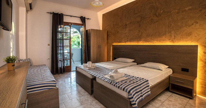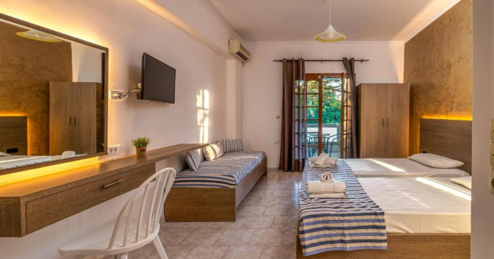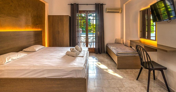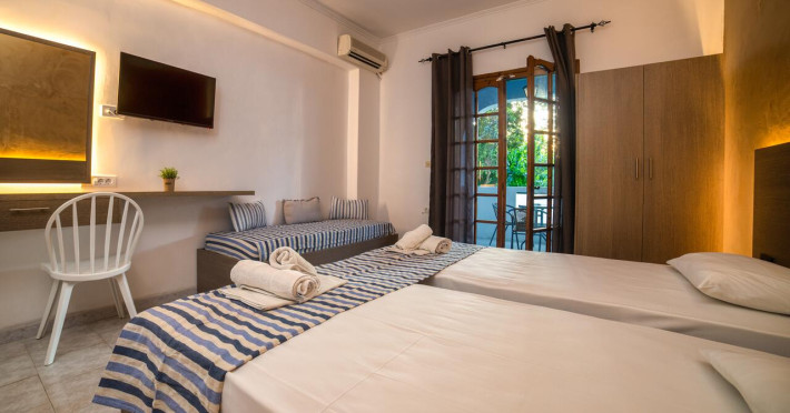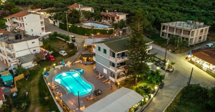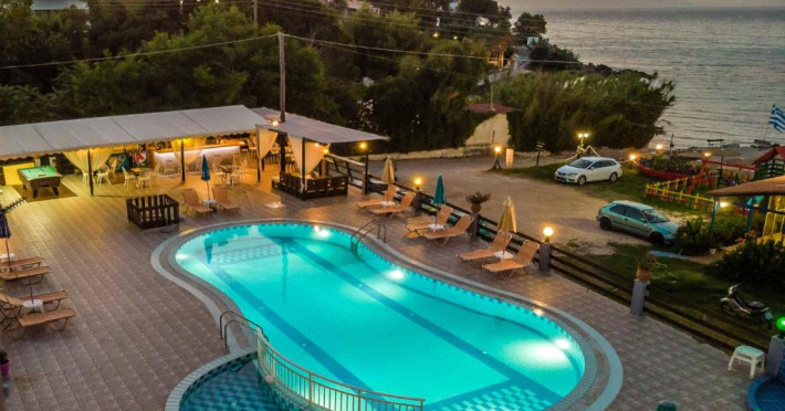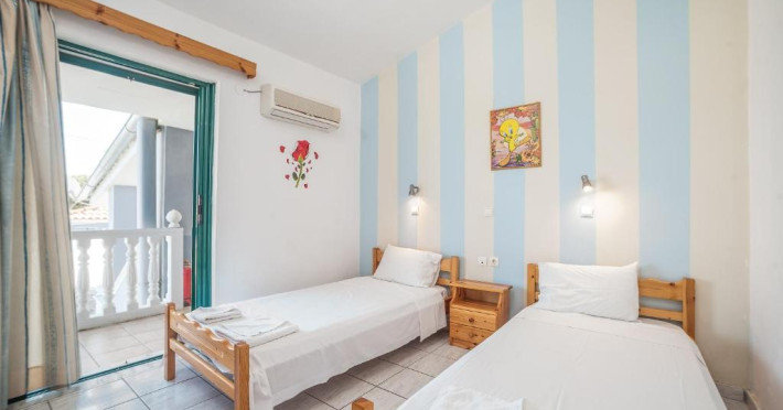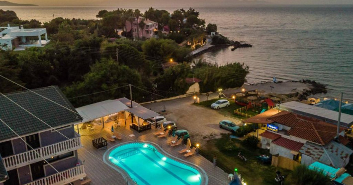 Oaspeții se pot relaxa la piscina cu umbrele și șezlonguri sau se pot plimba prin grădina bine intreținută. Zona inconjurătoare este ideală pentru plimbări și ciclism. La 20 de metri se află o tavernă pescărească tradițională, iar plajele cu nisip Alykanas si Alykes sunt situate la 1 km, respectiv 1,5 km. Orașul Zakynthos, cu portul său de feriboturi, se află la 15 km, iar Aeroportul Dionysios Solomos este situat la 18 km. La proprietate există parcare privată gratuită.