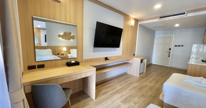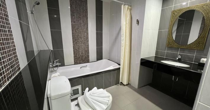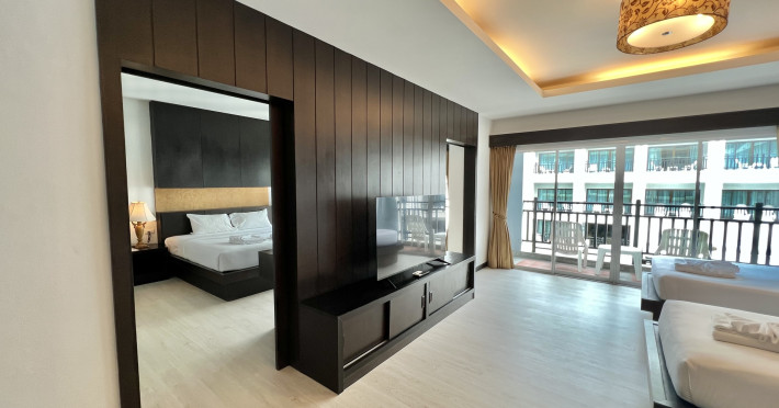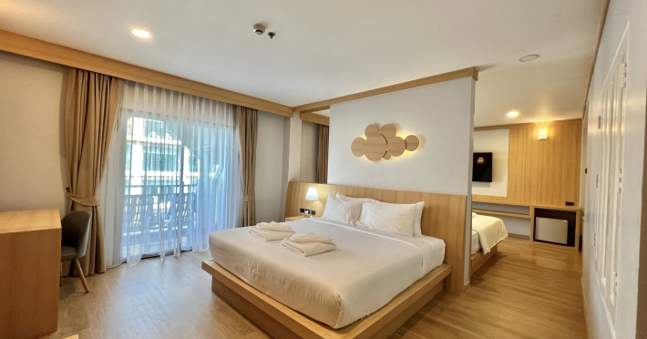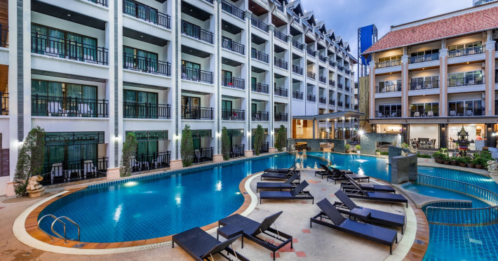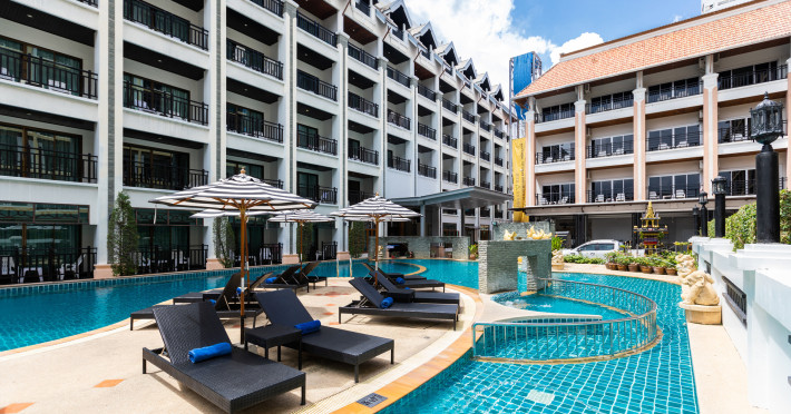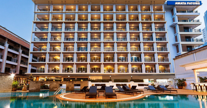 The 4 star hotel Amata Patong is located approximately 1,8 km from a beach and about 600 m from the sea. The nearest bars and restaurants are located directly next to the building. The old town is around 15 km away. The nearest shops you can reach within around 200 m, a supermarket is around 1 km away. There is a 24h shuttle service between the hotel and the airport (for a fee) 24h a day. On the beach are beach towels available. To reach the beach a shuttle (for a fee) is provided. The hotel has a 24h reception (check-in is possible around the clock), a lobby, Wi-Fi, internet access, a lift, cash machine, a first aid kit, parking spaces (limited) as well as a TV lounge with satellite TV. In the outdoor area of the property you will find a pool (open all year), where sun loungers, sun umbrellas and pool towels are available for free. For children there is also a children's pool. Furthermore, you can relax outdoors on a roof terrace. In addition, the hotel Amata Patong is video-monitored 24h a day. For very young guests, kid`s chairs, highchairs and cots can be provided. You can store your luggage in the hotel's storage room. There is also a laundry service available at an additional cost to customers as well as an ironing service. Ironing equipment can also be rented at the hotel for a fee. For your comfort the hotel page will ensure you are looked after. If necessary, you can contact the medical centre at any time. The energy supply is 220 Volts. For conventions and other business meetings, the hotel offers a conference area with a total of 40 seats, printer, scanner, internet access as well as a catering service. A photographer can also be ordered from the hotel for business events. If you want to explore the holiday region, you can use the car and motorbike rental service close to the hotel (extra fee). At the hotel reception, tickets are offered for excursions in the area. For guests on their honeymoon, the hotel has special offers such as a romantically-decorated room, special honeymoon packages, romantic dishes in the restaurant, champagne, sparkling wine or flowers in the room. American Express, Visa and EC cards are accepted as means of payment. Due to its barrier-free facilities , such as wheelchair-accessible bathrooms, the hotel is also suitable for wheelchair users. Catering As catering services the hotel offers all-inclusive, half board, full board and breakfast only. Breakfast is offered American, continental, from the buffet or à la carte (extras on request). Enjoy your lunch as a set meal or à la carte with starters, salads and desserts (extras on request). Dinner is also served as a buffet, as a set meal or à la carte with starters, salads and desserts (extras on request). Half board includes breakfast, lunch and dinner. When booking all-inclusive, one meal in the à la carte restaurant is included. As part of the all-inclusive service, water (24h), softdrinks (24h), coffee and tea (24h), wine (24h) as well as local alcoholic beverages (24h) are available at no extra charge. For the meals, there are a restaurant (gluten-free dishes) and several bars as well as the pool bar. The drinks menu of the hotel includes water, soft drinks, coffee and tea, beer, wine and 24h international alcoholic beverages. Alcoholic beverages are not served in the hotel. A picnic bench can be used by guests for self-catering. For dinner, guests are asked to wear appropriate clothing in the restaurant. You can take part in the cooking classes offered by the hotel during your stay. Distances- Discotheque: approximately at 1 km