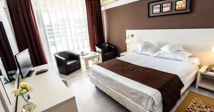 Camerele duble superior au mobilier nou, pat matrimonial, canapea extensibila, baie proprie, internet, aer conditionat, telefon, TV, minibar, uscator par, seif si balcon cu vedere catre mare.