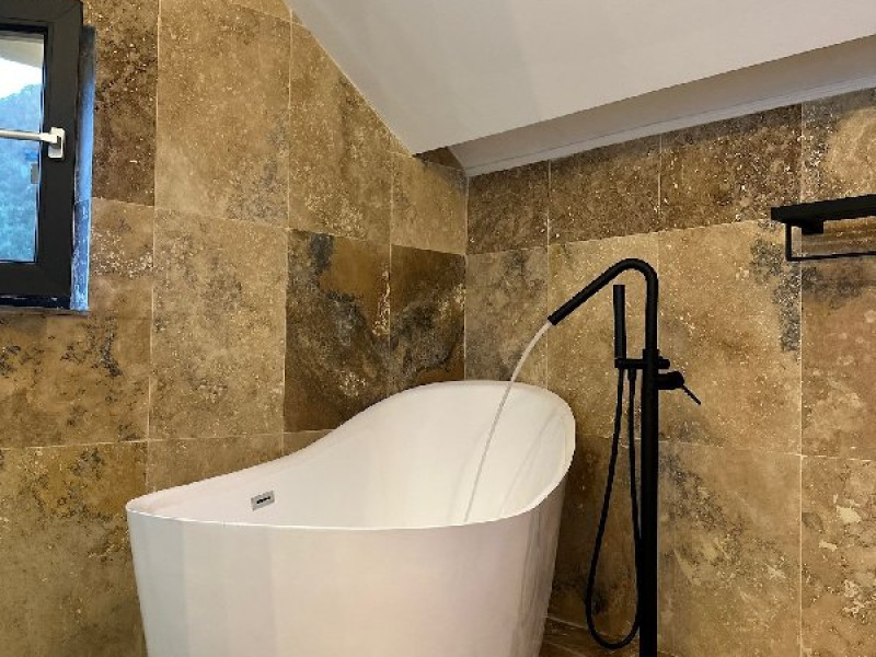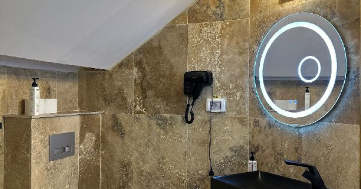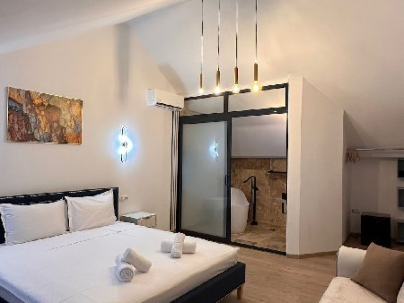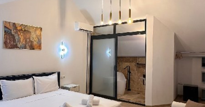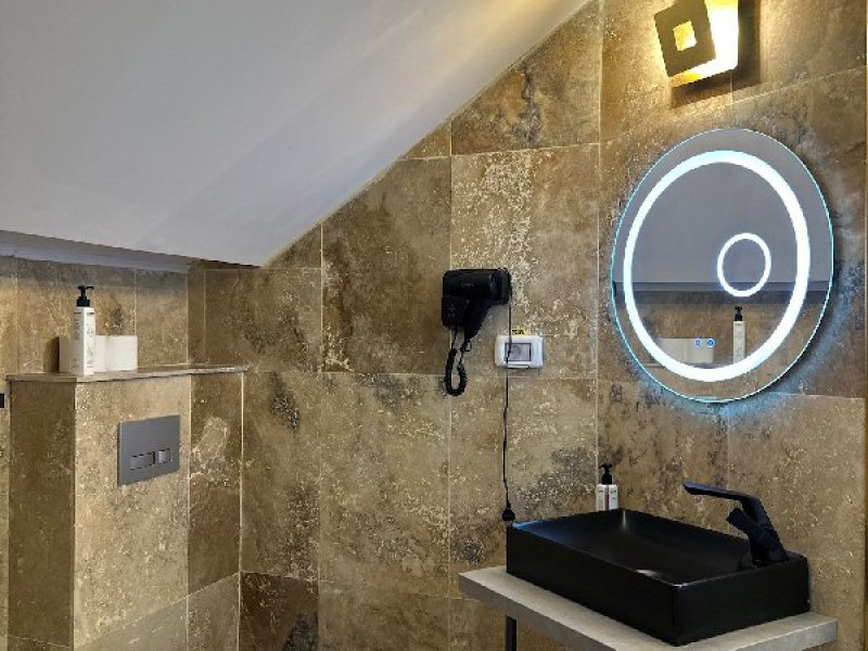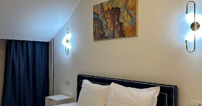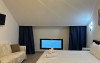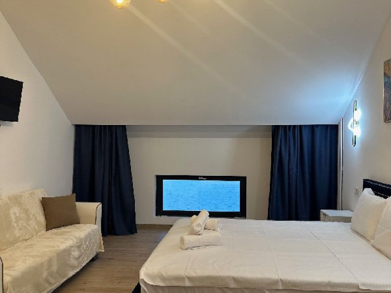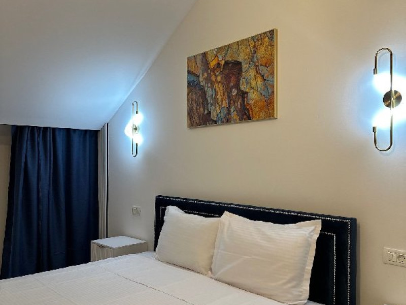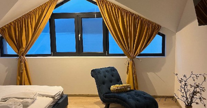 In locatie exista doua camera duble cu pat matrimonial si cinci camere triple cu pat matrimonial si canapea de o persoana.