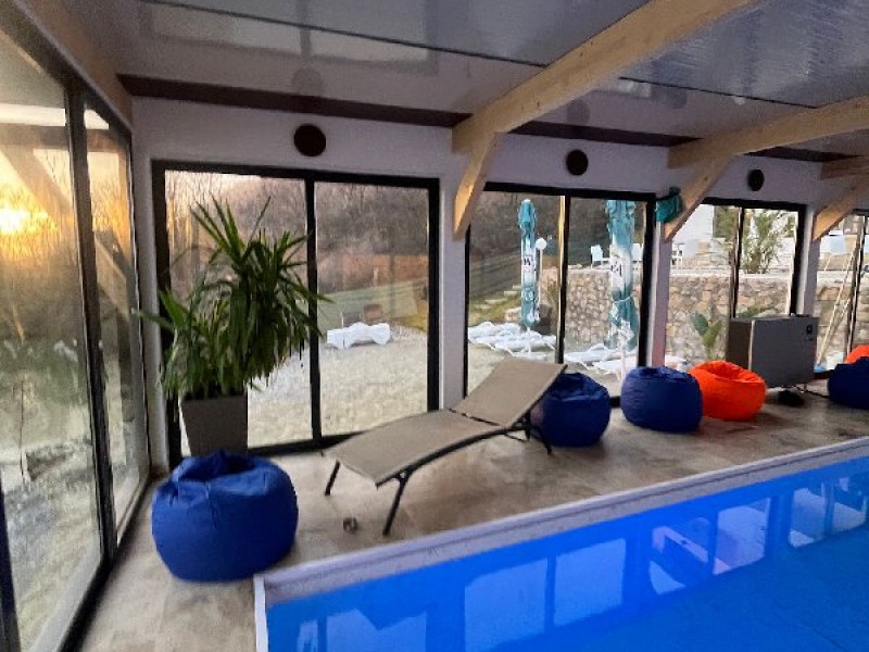 Spatiile comune includ terasa si piscina exterioara cu sezlonguri care functioneaza doar in sezonul estival. Locatia dispune si de parcare proprie.