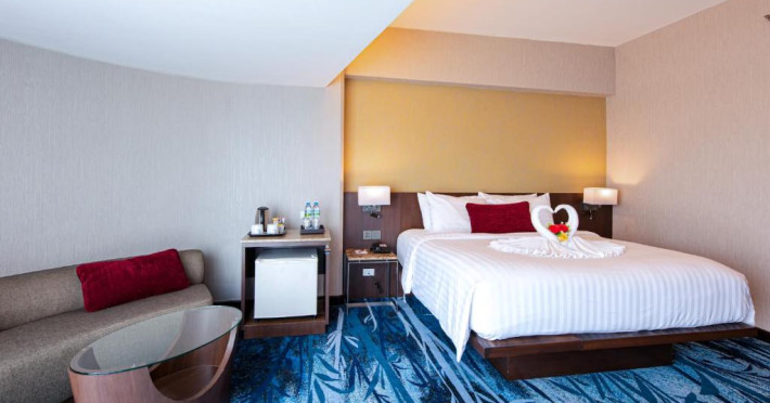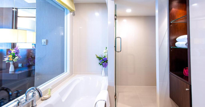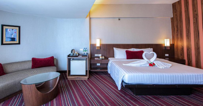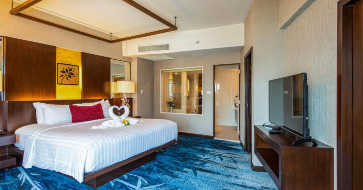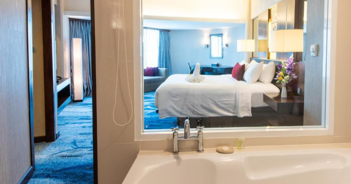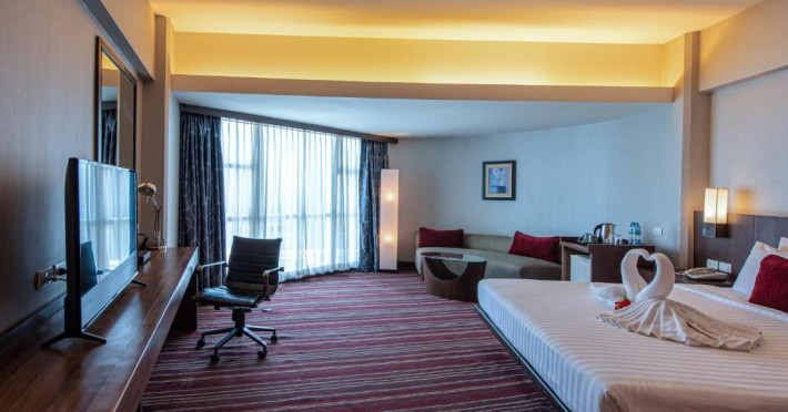Camerele oferă aer condiționat, mobilier plin de culoare, TV cu plasmă și un minibar mare. Băile proprii au decor din marmură și articole de toaletă.