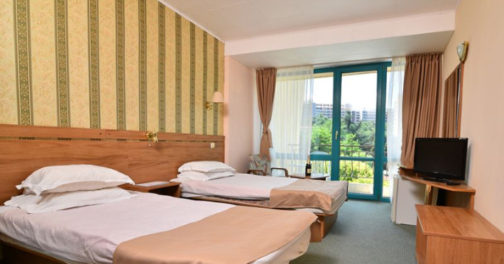 Fiecare cameră este echipată cu aer condiționat, televizor, telefon, frigider, baie dotată cu duș/cadă și balcon.