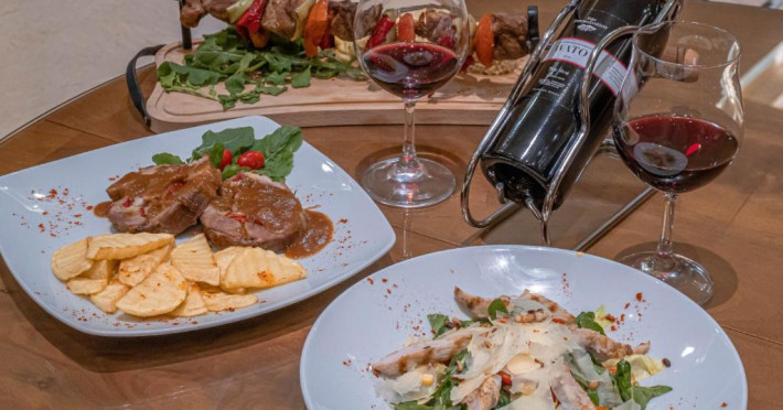 Oaspeții iși pot incepe ziua cu un mic dejun bogat tip bufet. Restaurantul - Bar Ambassador, care servește mancăruri tradiționale grecești și se bucură de vedere la oraș și la golful Thermaikos. In timpul lunilor de vară, zona piscinei oferă locul perfect pentru o cină romantică.