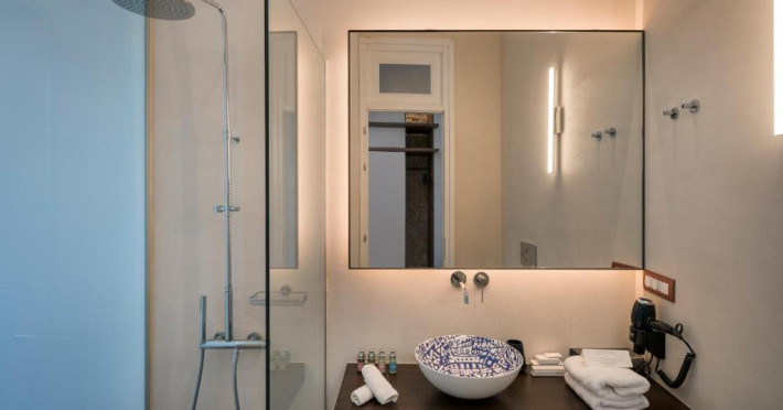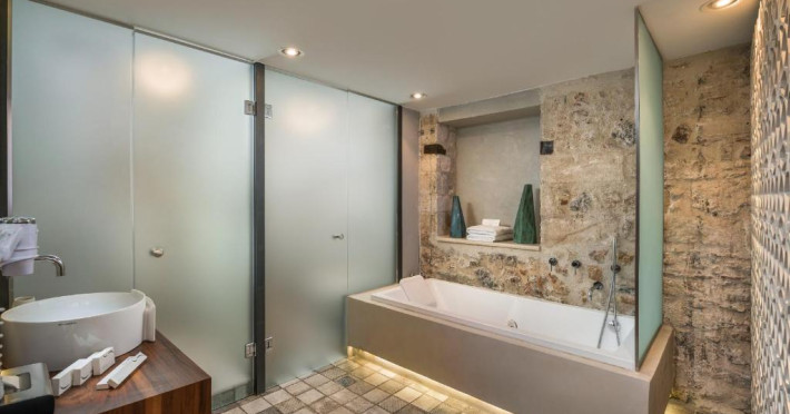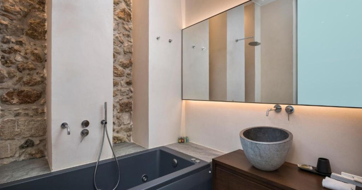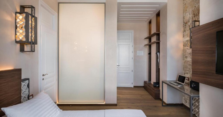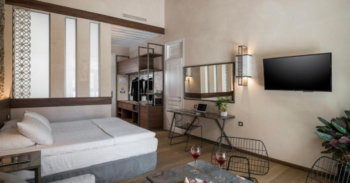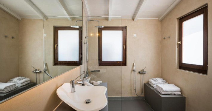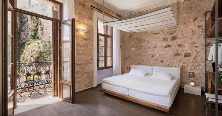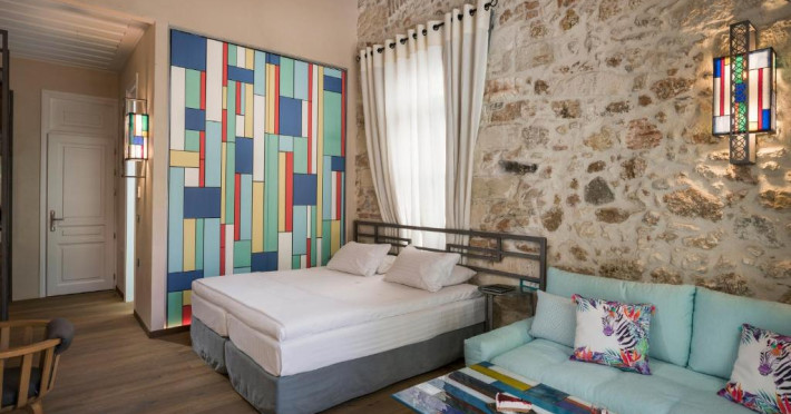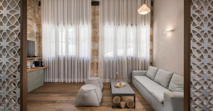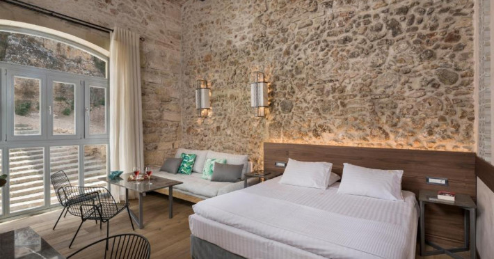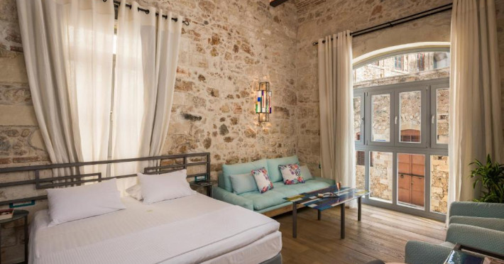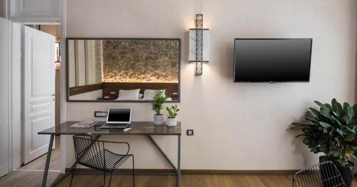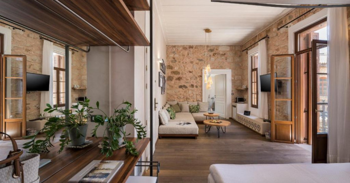 Toate camerele suitele de la Ambassadors au accesorii elegante și detalii din piatră, aer și zonă de relaxare cu TV cu ecran plat cu canale prin satelit și minibar. Majoritatea unităților au vedere la Marea Cretei și la vechiul port, iar unele au cadă spa și terasă sau balcon. In baie proprie există halate de baie, papuci și articole de toaletă.