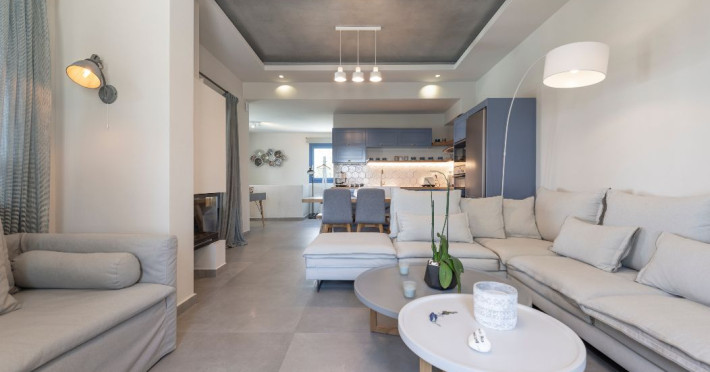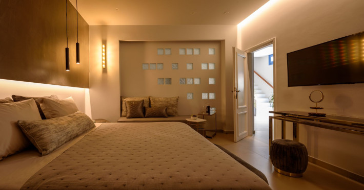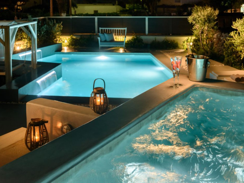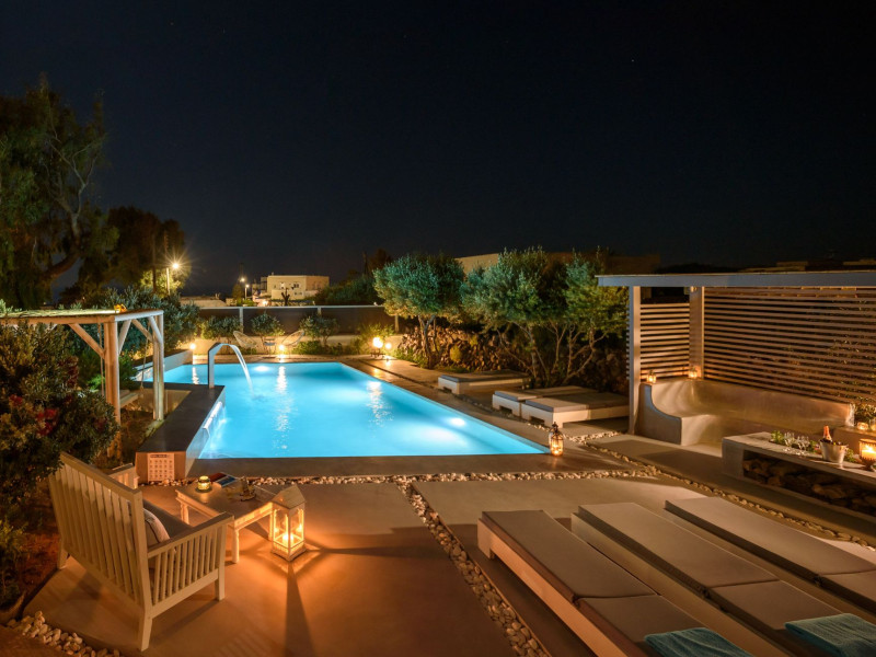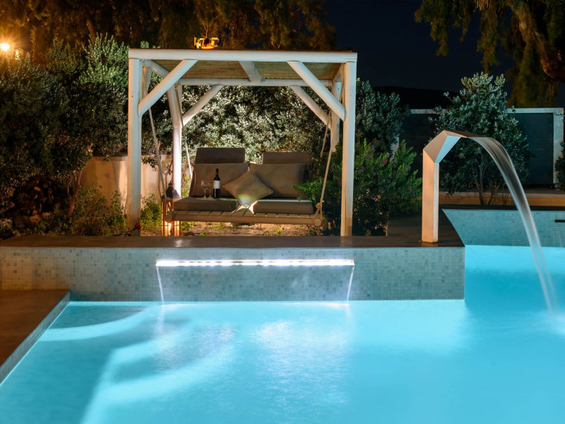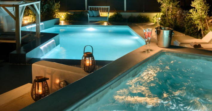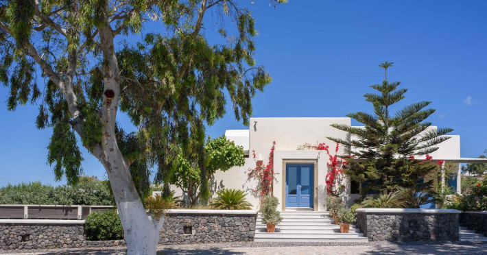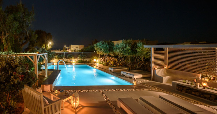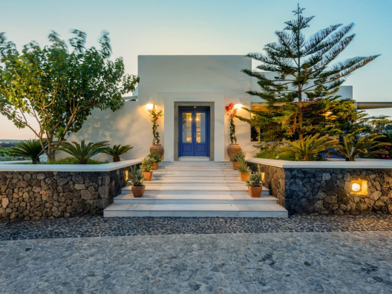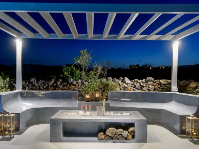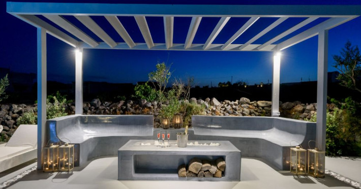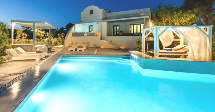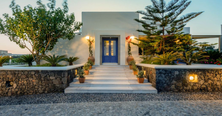 In a tranquil location on the way to Megalochori, a man with 15 years’ experience in the hospitality industry decided to transform a large family vineyard into an enchanting private oasis. Being in perfect harmony with its surroundings, the elegant “Ambeli Villa” is a stunning honeymoon villa and a comfortable residence built of black and white stone, which has all the modern amenities one could ask for. This luxury accommodation features an amazing outdoor pool with Jacuzzi as well as breathtaking views from the balconies, which can turn your Santorini vacations into a memorable experience. It’s the ideal combination of the privacy of your own luxury villa, with the comforts of a hotel.In a tranquil location on the way to Megalochori, a man with 15 years’ experience in the hospitality industry decided to transform a large family vineyard into an enchanting private oasis. Being in perfect harmony with its surroundings, the elegant “Ambeli Villa” is a stunning honeymoon villa and a comfortable residence built of black and white stone, which has all the modern amenities one could ask for. This luxury accommodation features an amazing outdoor pool with Jacuzzi as well as breathtaking views from the balconies, which can turn your Santorini vacations into a memorable experience. It’s the ideal combination of the privacy of your own luxury villa, with the comforts of a hotel.