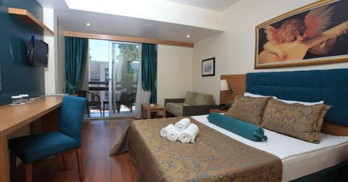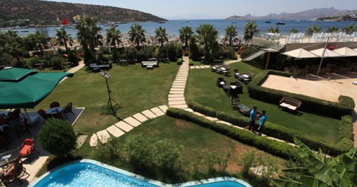 The quietly situated hotel consists of totally 106 rooms, offers a big entrance lobby with a reception desk, TV room, indoor and outdoor restaurant, lobby bar, snackbar, a swimming pool with a children section and 100 m long sandy beach. Sun beds, mattresses and beach towels are free of charge both at the pool and the beach. ------------------------- LOCATION; The grounds of your hotel run right down to the blue flagged beach making it ideal for a quiet beach holiday. A short 400 meter stroll will take you along the flat shoreline promenade to the resort centre. ROOM INFORMATION; Tastefully designed rooms include, bath/WC, split A/C, minibar, TV, telephone, costless digital safe box, hair dryer and balcony with two chairs. DIRECTIONS; The local bus stops right outside the front of the hotel to take you to center of Turkeyâs premier resortcity Bodrum, where you could visit 500 yon Bodrum Castle and one of the Seven Wonders of the World the Mausoleum. The nearest airport Bodrum Milas is 45km / 24 miles far and next airport Dalaman is 210 km / 127 miles far from the hotel. ADDITIONAL INFORMATION; As you take a drink in the lobby bar its restful atmosphere will caress as you enjoy with each sip of acooling drink. Or you could feel relaxing pleasure on the cushions next to beach.WINING amp; DINING;Half board service consists Mediterranean cuisine breakfast and dinner in buffet form and additionally,payable creative lunch menu. Vegetarian menu is also available at the buffet. In the mid and high season the dinner is served accompanied live music in 3 days a week. HEALTH amp; SPORT;Turkish bath, Jacuzzi, massage and the shock bath are available for a local charge. Gym hall providesalso table tennis. Water sports organized at the beach by the local companies.FACILITIES;24 hrs Room Service, Meeting Rooms (total cap:50), Ball and Conference Hall (total cap:300), Health Cabin, Laundry Service, WLAN Internet Access, Free Parking Lot, Generator, Money Exchange. SERVICES; Restaurant, Breakfast buffet, Conference rooms, Parking, Family rooms, Hairdresser, Gym, Sauna, Laundry, TV, In room telephone, Satellite TV, Minibar, Heating, Air conditioning, Safety Box, Hair Dryer, Terrace, Reception 24 hours, Shop, Non-smoking rooms, Wellness center, Spa, Garden, Swimming pool, Daytime activities, Disco, Bicycle lot, Business center, Evening activities. Distance to the beach; 0 km. Distance to the airport; 45 km. Distance to town centre; 7 km. For more details click hereDatorita dinamicitatii domeniului disponibilitatea ofertelor se modifica de la un moment la altul. De aceea ofertele sunt valabile in limita locurilor disponibile. Agentia nu este responsabila pentru eventualele neconcordante care pot aparea intre informatiile privind tarifele si alte detalii din site si informatiile primite in agentie. In aceste cazuri vor avea prioritate, intotdeauna, informatiile primite in agentie.