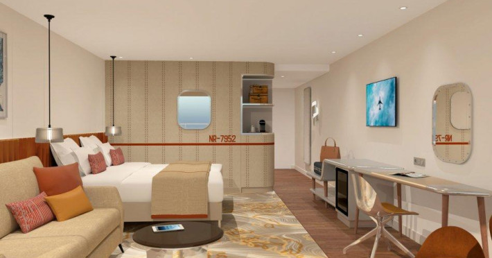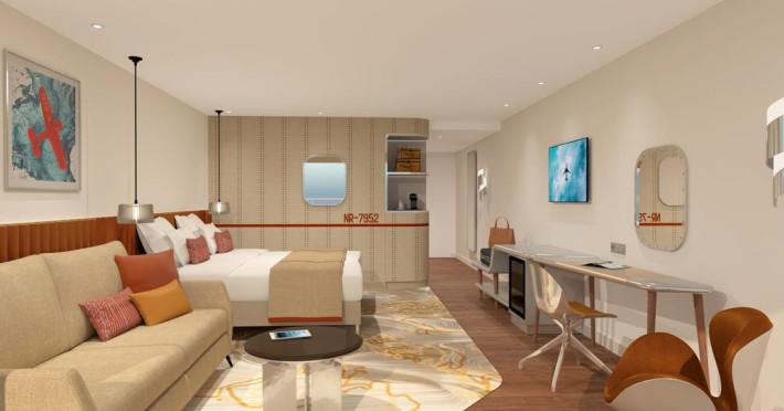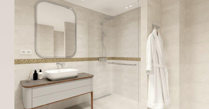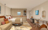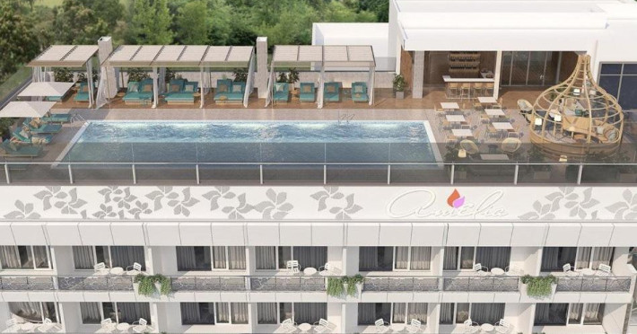 Amelia are în apropiere o plajă cu nisip. Pe plajă există șezlonguri și umbrele de plajă.