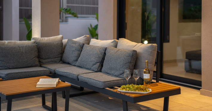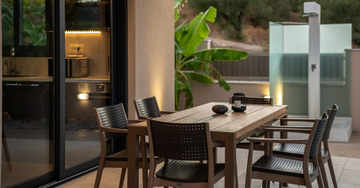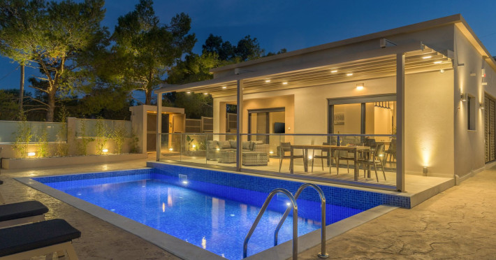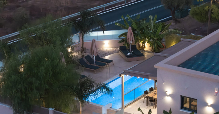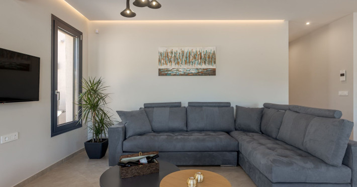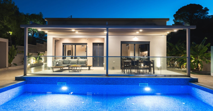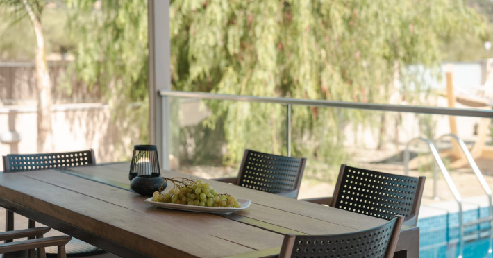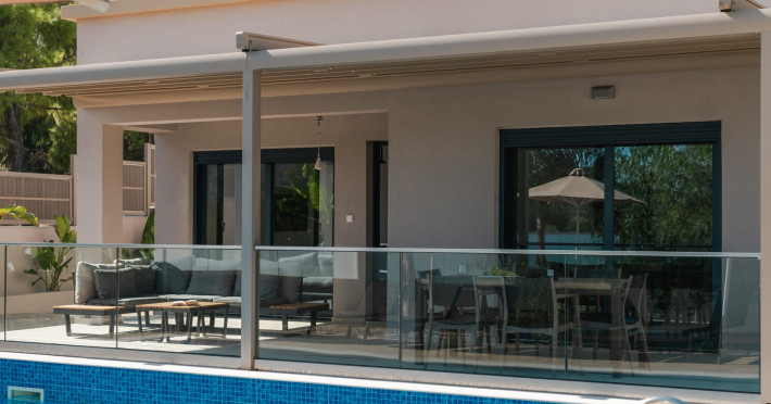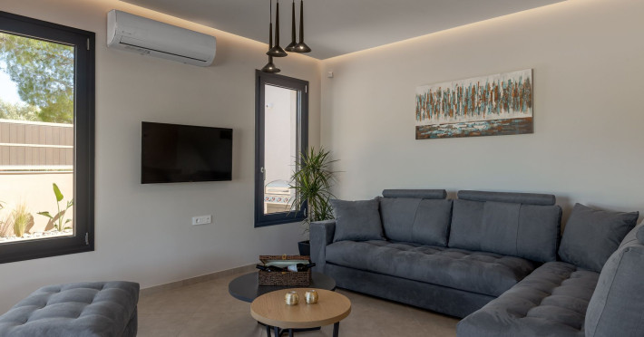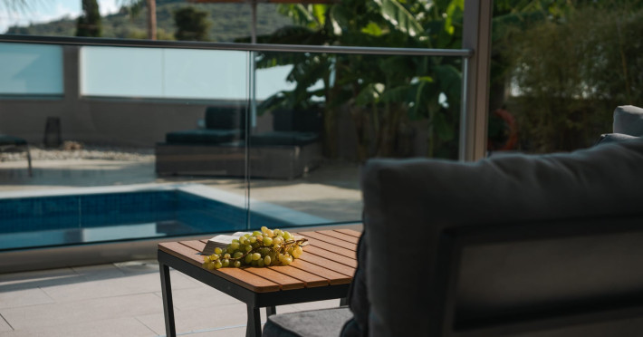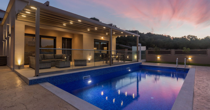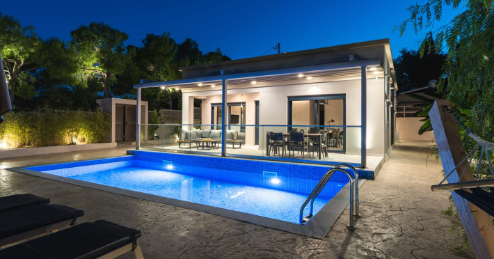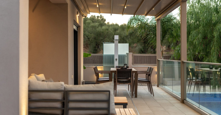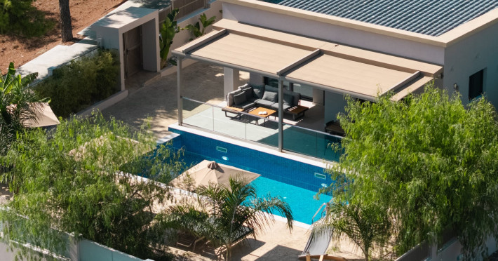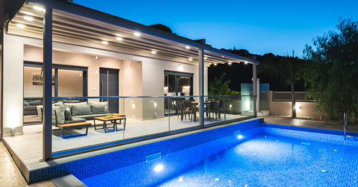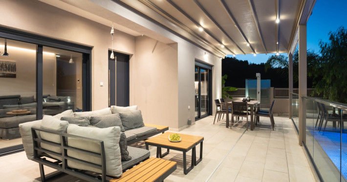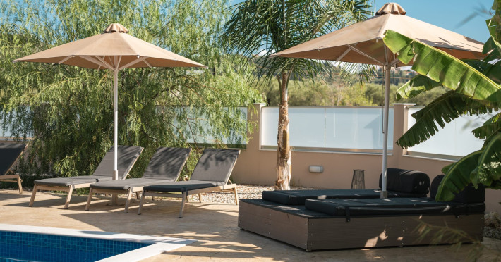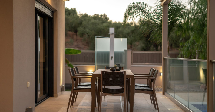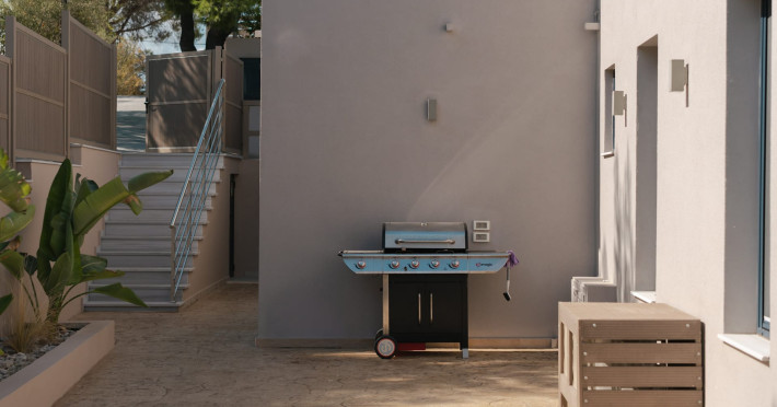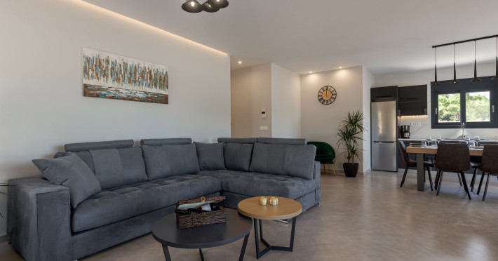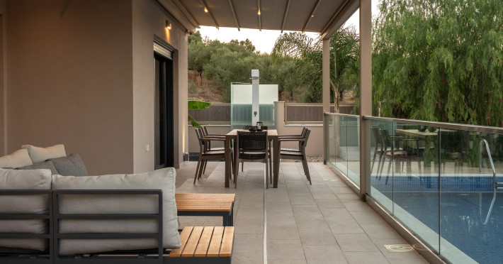 The luxurious, newly constructed holiday residence with pool, Amelia Residence, is built in a beautiful, leafy location in the village of Kato Gerakari, just 10 km from the city of Zakynthos. It offers its guests ideal moments of relaxation and tranquility in the verdant nature while combining all the comforts of a state-of-the-art residence.The spacious rooms and the idyllic environment offer a unique experience for families or groups of up to 9 guests who want to relax and combine luxury with the incomparable beauty of the landscape of Zakynthos.Rejuvenation, wellness, and relaxation by the pool and moments with family or friends at the privately-owned barbeque are combined in a unique environment that offers all the comforts and anticipates all the needs of its visitors!The luxurious, newly constructed holiday residence with pool, Amelia Residence, is built in a beautiful, leafy location in the village of Kato Gerakari, just 10 km from the city of Zakynthos. It offers its guests ideal moments of relaxation and tranquility in the verdant nature while combining all the comforts of a state-of-the-art residence.The spacious rooms and the idyllic environment offer a unique experience for families or groups of up to 9 guests who want to relax and combine luxury with the incomparable beauty of the landscape of Zakynthos.Rejuvenation, wellness, and relaxation by the pool and moments with family or friends at the privately-owned barbeque are combined in a unique environment that offers all the comforts and anticipates all the needs of its visitors!