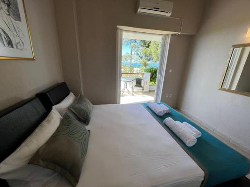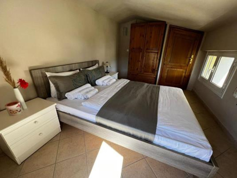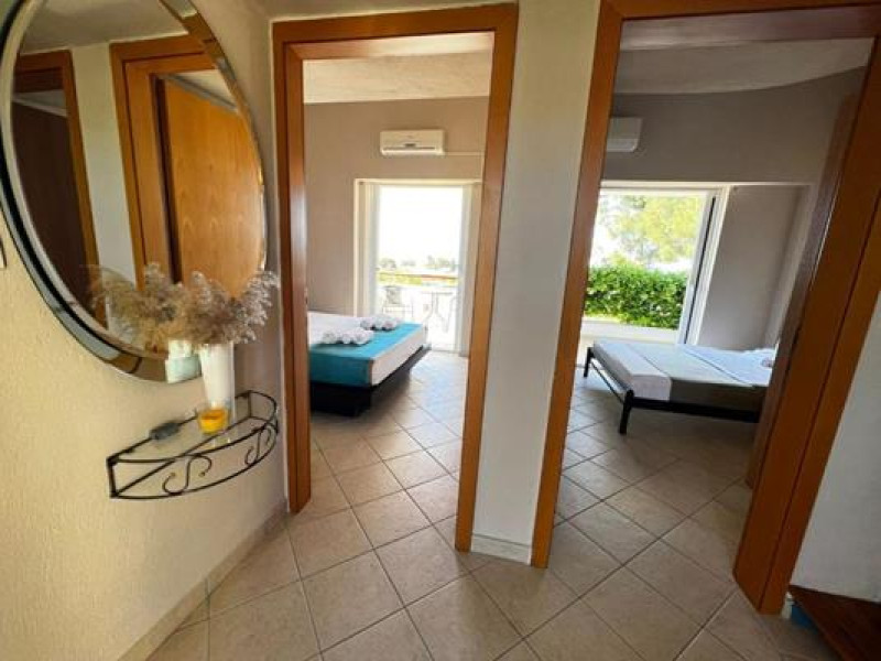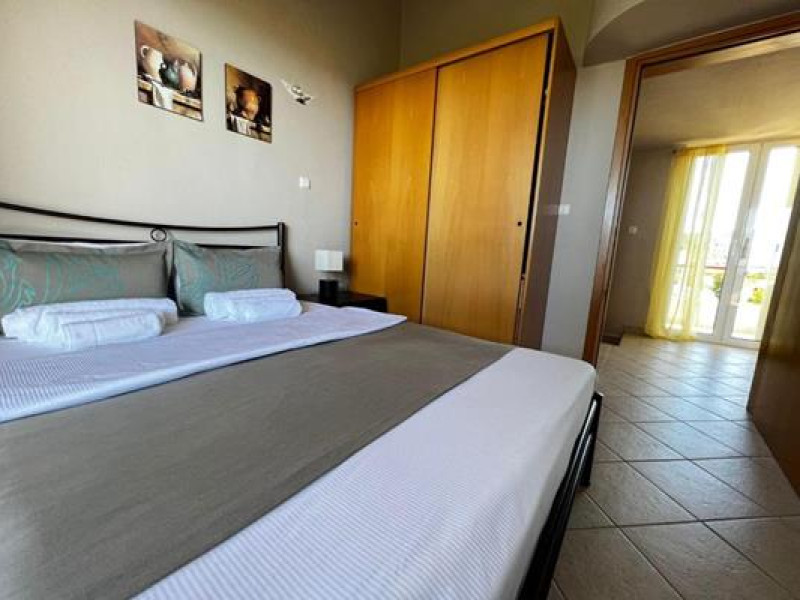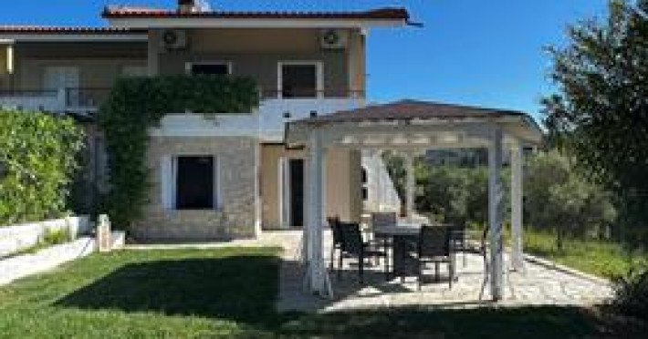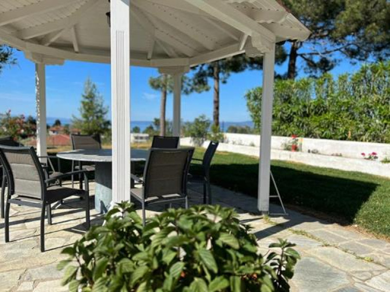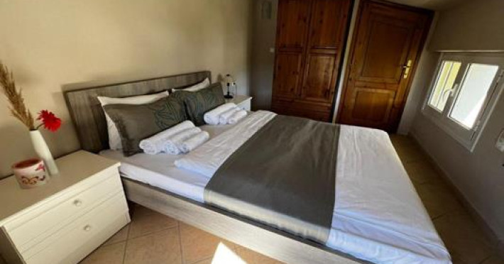 Amelias Villa is a beautiful and modern villa located in the village of Pefkohori, offering stunning views of the sea and surrounding greenery. The villa is conveniently situated within a 7-minute walk of Pefkohori Beach and one kilometer from Paralia Glarokabos. The villa is designed with a modern and calming color scheme and features 3 bedrooms, 1 bathroom, and a spacious and comfortable living room. The villa also comes with all the amenities you need for a comfortable and enjoyable stay, including free Wi-Fi, air conditioning, a safe, washing machine, dishwasher, iron, and hair dryer. The fully equipped kitchen makes it easy to prepare your own meals during your stay, while the villa's patio with garden views and sun terrace are perfect for relaxing and enjoying the beautiful scenery. The villa also features a barbecue area in the garden, ideal for hosting a family meal or a barbecue party with friends. Additionally, guests can take advantage of the car rental service available at the villa, which is an excellent way to explore the local area and nearby attractions. Overall, Amelias Villa is a wonderful choice for those seeking a peaceful and comfortable stay with all the amenities and conveniences of a modern villa.Full description