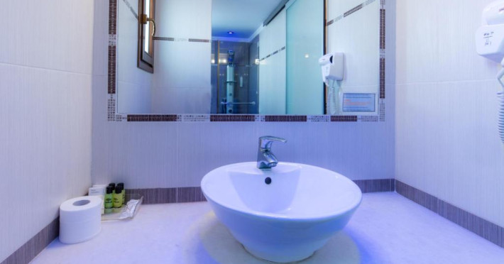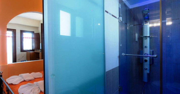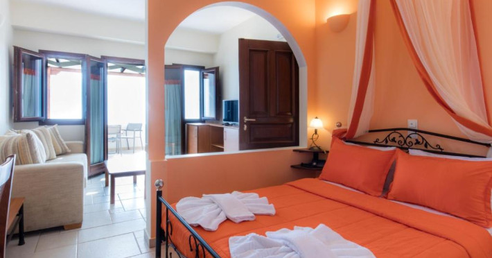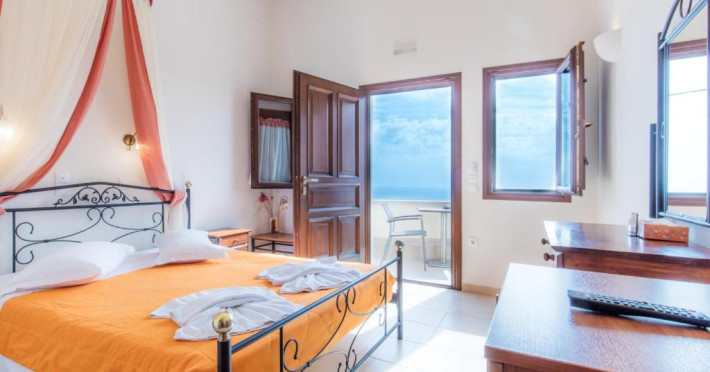 Unele camere au balcon cu vedere la mare, unde oaspeții pot admira apusul sau răsăritul soarelui. În camere există baie cu duș prevăzută cu foehn. Camerele luminoase de la Amerisa Suites sunt dotate cu aer condiționat și Tv cu canale prin satelit. Oaspeții au acces gratuit la serviciul Wi-fi în camere.