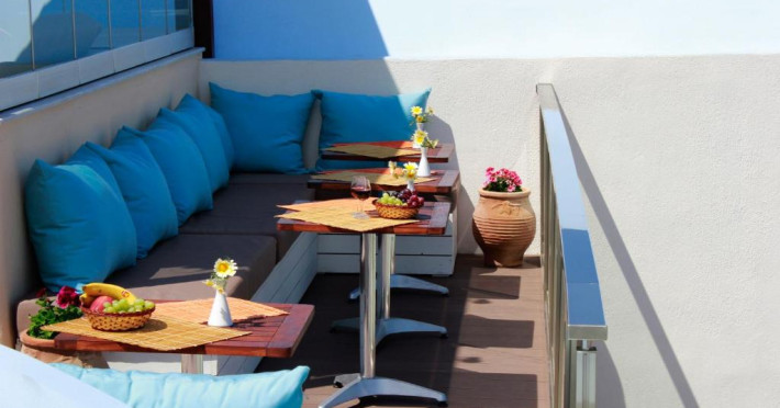 Oaspeții se pot relaxa pe terasa de la Amerisa Suites.