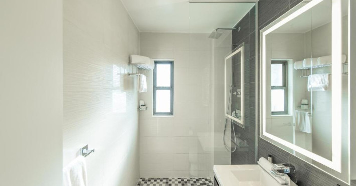Camerele de la Ameritania sunt dotate cu televizoare prin cablu. Fiecare cameră spațioasă include articole de toaletă de designer și birou. Acestea sunt decorate cu culori bogate, mobilier din mahon și decor modern.