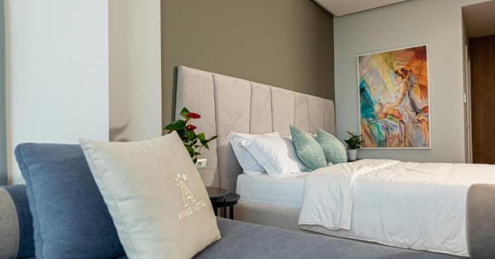 Ames Hotel & SPA se află la 8 minute de mers pe jos de Plaja Ri și la 2,7 km de Plaja Vjetër. Cel mai apropiat aeroport este Aeroportul Internațional Maica Tereza din Tirana, situat la 153 km de acest hotel.