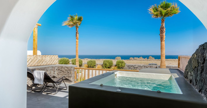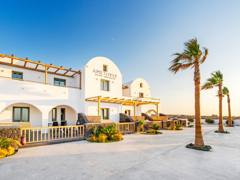Amethyst Luxury Suites, a gem in itself, located right by the sapphire blue crystalline clear waters of the Aegean Sea, is a haven of peace and luxury, ideally designed to satisfy your every expectation. Its coveted, unrivalled setting is ideally designed to suit your every need, while at the same time, creating precious treasured memories you will cherish for a lifetime. Be it a Deluxe double suite with the privacy of your own VIP heated hot tub or another exquisite suite of your choice, all spacious and scrupulously clean suites adhere to the latest state of the art standards. Superior top-quality mattresses await to envelop you in a deep rejuvenating night’s sleep. All your troubles will melt away as you are cossetted by the finest VIP facilities & materials and enjoy a breathtaking view of sun kissed waves, sparkling like exquisite diamonds under a cloudless azure sky. For the perfect start to your day, a sumptuous buffet breakfast awaits you by the pool, inviting you to savour the enticing delights on display, which may be replenished on request. Feel free to unwind by the pool, while our experienced staff cater to your every whim. Sip on a glass of champagne, while immersing yourself in the luxury of a private heated outdoor hot tub as you take in the renowned, magnificent Santorini sunset crowning the golden sea of the Cyclades. The elegant ambience and unparalleled views make it the perfect setting for weddings and special events which can be customized to suit your individual requirements and even include a reputed musical ensemble of your choice. Receive a host of complimentary benefits, including early check in & late check out based on availability. Whether you require transport services, sightseeing trips, the reservation of a restaurant of your choice or the organization of a special event, The management and reception service is at your disposal to guide you, offering recommendations, suggesting itineraries & a wealth of local knowledge. Relax & allow our dedicated staff to introduce you to the quintessential experience of Greek hospitality. With a legacy of leadership in the hospitality industry, the discreet character and warm attitude of the owner and hostess reflect the highest standards of Greek hospitality and “philotimo” (love of honour and uprightness). Their broad experience is at your disposal, ensuring you feel at home from the instant you set foot on this paradise on earth.Amethyst Luxury Suites, a gem in itself, located right by the sapphire blue crystalline clear waters of the Aegean Sea, is a haven of peace and luxury, ideally designed to satisfy your every expectation. Its coveted, unrivalled setting is ideally designed to suit your every need, while at the same time, creating precious treasured memories you will cherish for a lifetime. Be it a Deluxe double suite with the privacy of your own VIP heated hot tub or another exquisite suite of your choice, all spacious and scrupulously clean suites adhere to the latest state of the art standards. Superior top-quality mattresses await to envelop you in a deep rejuvenating night’s sleep. All your troubles will melt away as you are cossetted by the finest VIP facilities & materials and enjoy a breathtaking view of sun kissed waves, sparkling like exquisite diamonds under a cloudless azure sky. For the perfect start to your day, a sumptuous buffet breakfast awaits you by the pool, inviting you to savour the enticing delights on display, which may be replenished on request. Feel free to unwind by the pool, while our experienced staff cater to your every whim. Sip on a glass of champagne, while immersing yourself in the luxury of a private heated outdoor hot tub as you take in the renowned, magnificent Santorini sunset crowning the golden sea of the Cyclades. The elegant ambience and unparalleled views make it the perfect setting for weddings and special events which can be customized to suit your individual requirements and even include a reputed musical ensemble of your choice. Receive a host of complimentary benefits, including early check in & late check out based on availability. Whether you require transport services, sightseeing trips, the reservation of a restaurant of your choice or the organization of a special event, The management and reception service is at your disposal to guide you, offering recommendations, suggesting itineraries & a wealth of local knowledge. Relax & allow our dedicated staff to introduce you to the quintessential experience of Greek hospitality. With a legacy of leadership in the hospitality industry, the discreet character and warm attitude of the owner and hostess reflect the highest standards of Greek hospitality and “philotimo” (love of honour and uprightness). Their broad experience is at your disposal, ensuring you feel at home from the instant you set foot on this paradise on earth.