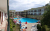 Hotelul dispune de 230 camere duble, 21 camere tip family si 16 apartamente. Localizare: in partea sudica a statiunii, aproape de plaja. Dotari camera: televizor, telefon, balcon, aer conditionat. Facilitati hotel: restaurant, cocktail bar, lobby, centru de frumusete, sala de masaj, piscina exterioara cu sectiune pentru copii, seif la receptie, tenis de masa, darts, volei pe plaja, fotbal, magazine.Datorita dinamicitatii domeniului disponibilitatea ofertelor se modifica de la un moment la altul. De aceea ofertele sunt valabile in limita locurilor disponibile. Agentia nu este responsabila pentru eventualele neconcordante care pot aparea intre informatiile privind tarifele si alte detalii din site si informatiile primite in agentie. In aceste cazuri vor avea prioritate, intotdeauna, informatiile primite in agentie.