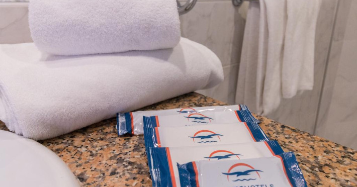 În camere există baie cu cadă sau duș prevăzută cu foehn. Camerele de la Amic Horizonte sunt dotate cu aer condiționat, Tv cu canale prin satelit și seif. Unele camere au balcon cu vedere la mare sau la piscină. Oaspeții au acces gratuit la serviciul Wi-fi în camere. Curățenia in cameră se face zilnic. Anumite camere au cadă cu hidromasaj care asigură un plus de confort și răsfăț. Proprietatea oferă camere pentru familie cu o suprafață mai mare și un număr mai mare de paturi față de cele standard. Se pot rezerva de asemenea camere pentru nefumători.