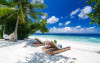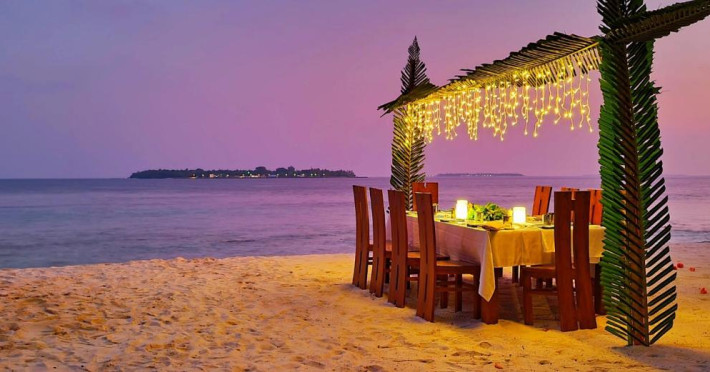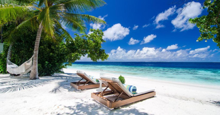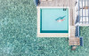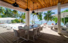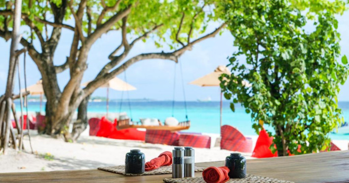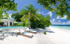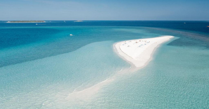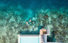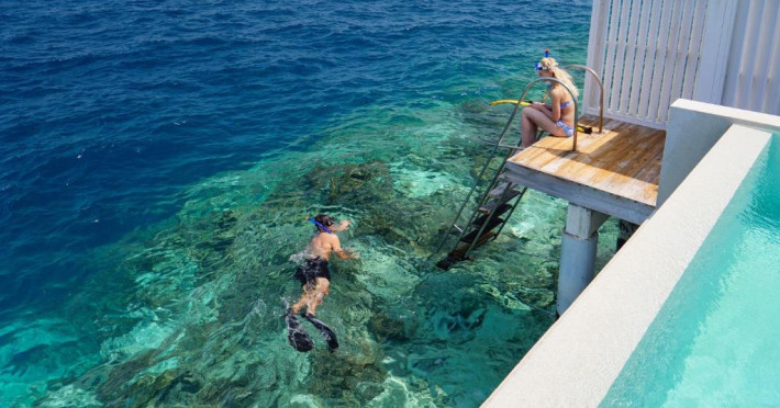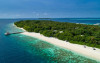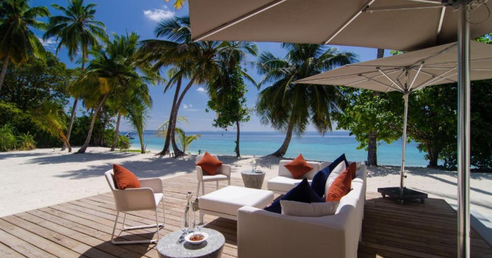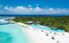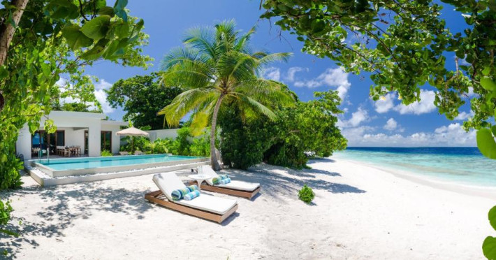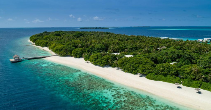 Plaja privată cu nisip fin se intinde de-a lungul intregii insule, oferind acces direct la laguna cristalină ideală pentru inot și snorkeling.