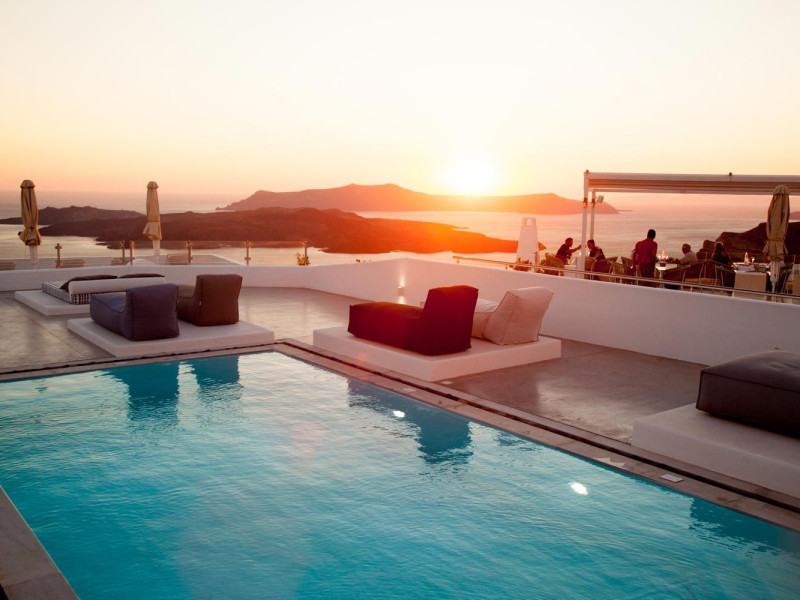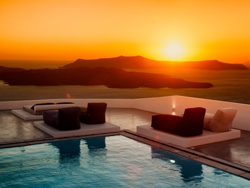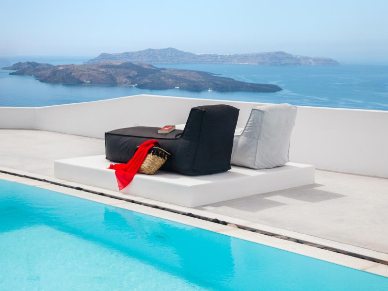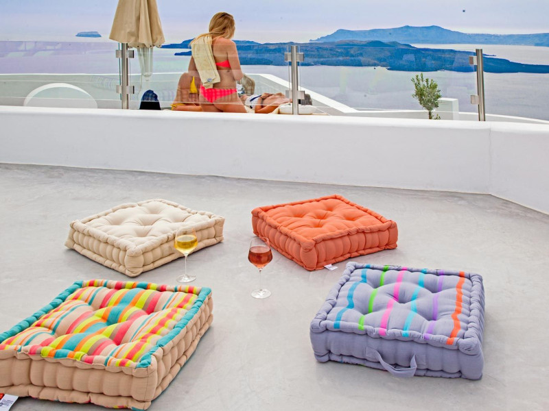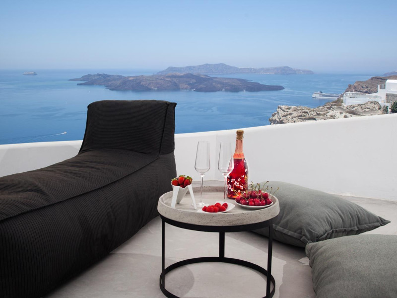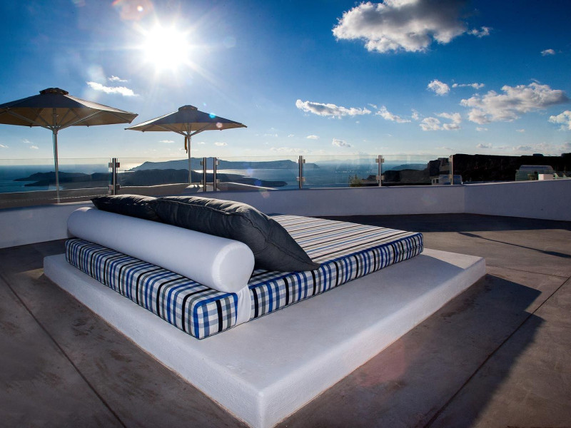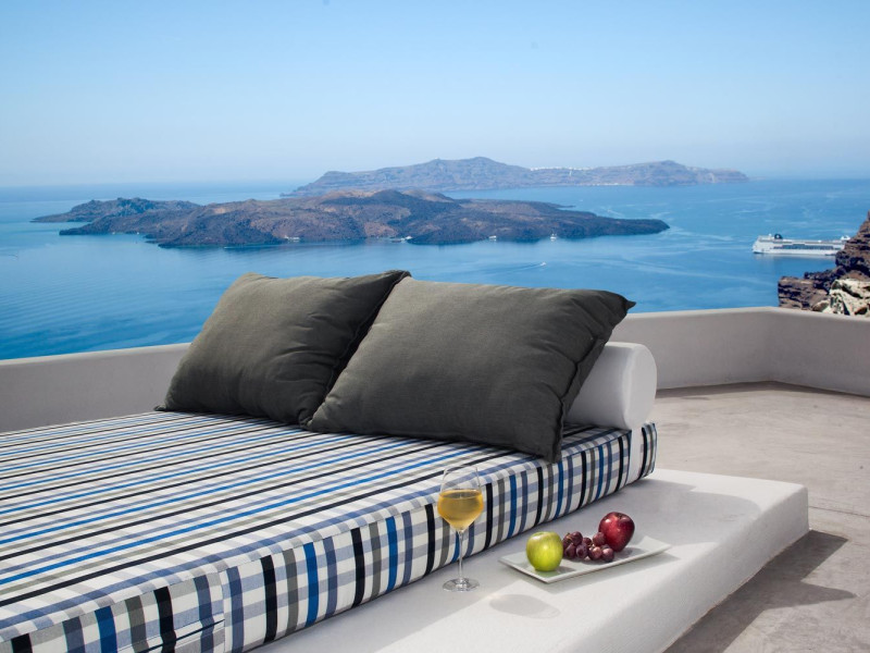 Perched on the cliff of the cadera, close to Fira, the island's capital, with the busy streets, and the exciting nightlife yet secluded from the visitors' crowds, offering a serene atmosphere with panoramic view to the sea, the volcano and the famous sunset.Perched on the cliff of the cadera, close to Fira, the island's capital, with the busy streets, and the exciting nightlife yet secluded from the visitors' crowds, offering a serene atmosphere with panoramic view to the sea, the volcano and the famous sunset.