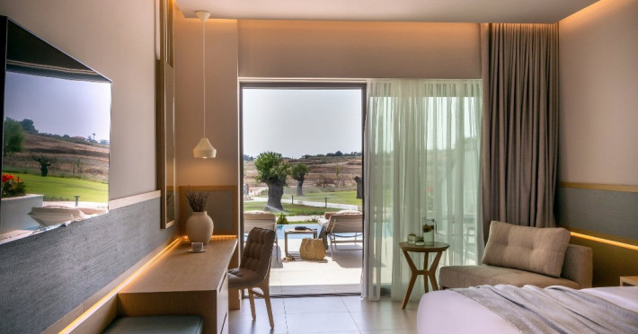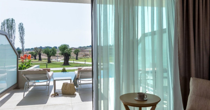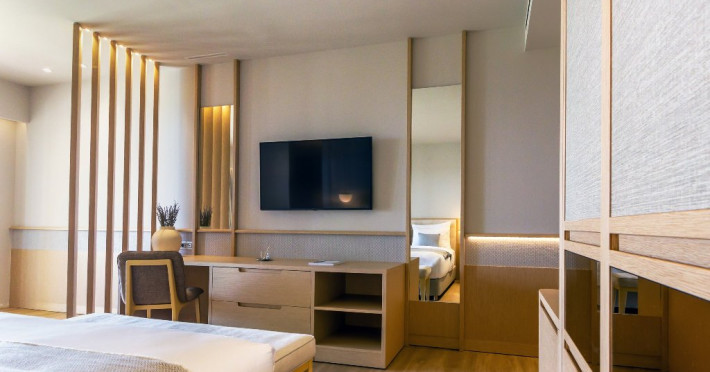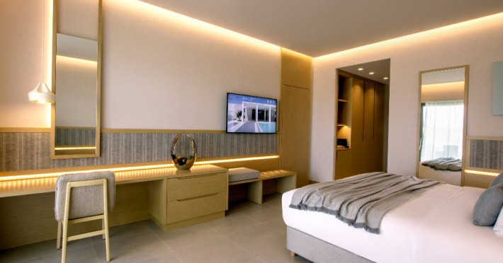 Hotelul dispune de un total de 179 camere si bungalow cu piscine private, cu design modern ce se imbina armonios cu natura inconjuratoare.