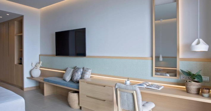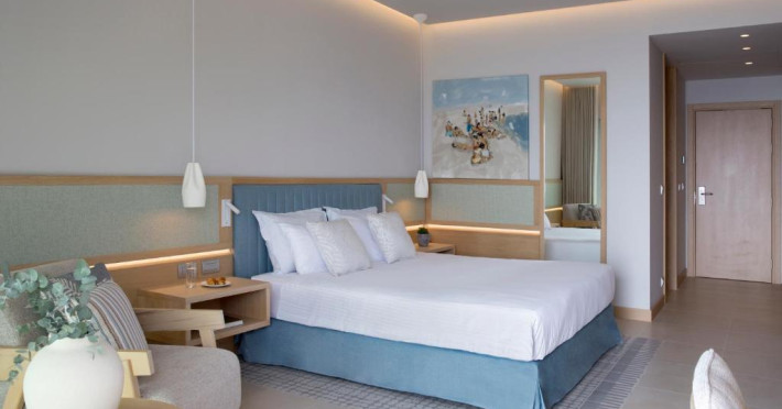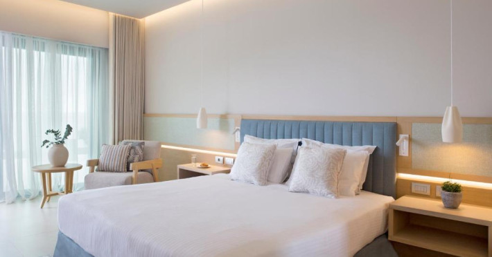 Sunt disponibile 179 camere. Unele camere au balcon cu vedere la mare sau la piscină. Camerele de la Ammoa Luxury Hotel & Spa Resort au în dotare Tv cu canale prin satelit și seif. Fiecare cameră dispune de un aparat pentru preparare cafea sau ceai. Oaspeții pot solicita serviciul de room service pentru a servi masa sau diverse băuturi. În camere există baie cu cadă sau duș, articole de toaletă gratuite, precum și halate de baie și papuci. Oaspeții au acces gratuit la serviciul Wi-fi în camere. Proprietatea oferă camere pentru familie cu o suprafață mai mare și un număr mai mare de paturi față de cele standard.