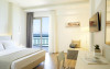 Cu balcon privat cu vedere la mare sau la grădină, toate camerele sunt dotate cu aer condiționat, TV LED cu canale prin satelit, minifrigider sau minibar și uscător de păr.