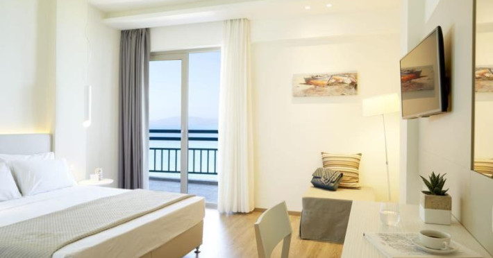 Hotelul are un spa cu o cadă cu hidromasaj, o baie de aburi și o saună, precum și o piscină cu o terasă de vară. Accesul la WiFi este gratuit în zonele publice. Restaurantul hotelului servește micul dejun și cina tip bufet, cu mâncăruri grecești și mediteraneene tradiționale, realizate din produse proaspete, locale. La piscină și la barul de pe plajă se pregătesc cocktailuri, gustări și băuturi sănătoase.