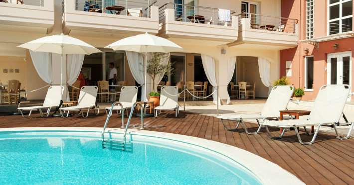 Acolo unde apa cristalină a Mării Ionice întâlnește frumusețea Epirului, în satul pescăresc Ammoudia, vă întâmpină Hotelul Ammos Bay pentru a vă oferi relaxarea mult cerută pentru vacanțele dumneavoastră valoroase. Cu cele 18 camere, decorate cu gust, acest mic complex vă câștigă cu aura de vară și prietenia sa pentru oaspeți. Piscina cu punte de lemn vă invită pentru momente infinite de relaxare. Locul Ammoudia este punctul ideal pentru a descoperi locurile apropiate sau, de asemenea, pentru o plimbare seara de-a lungul râului și pentru a vă bucura de pește proaspăt la tavernele din apropiere.